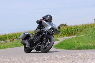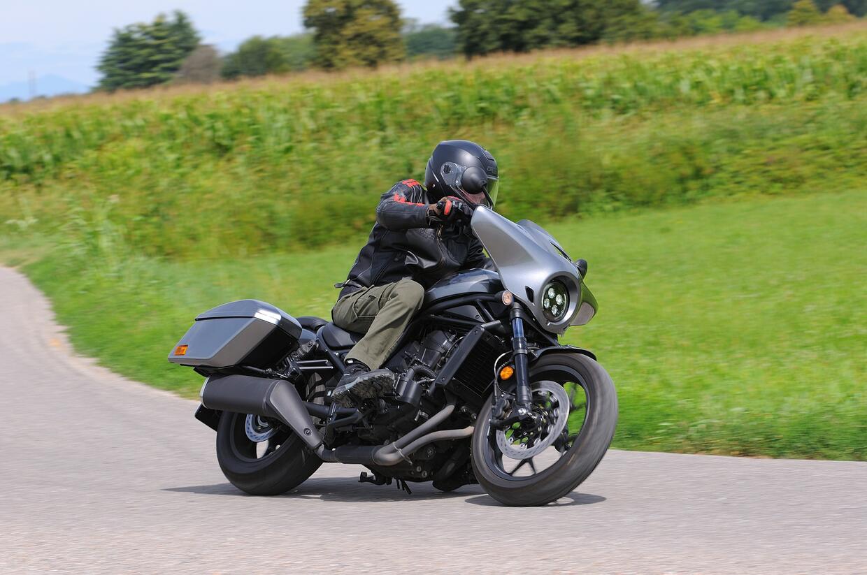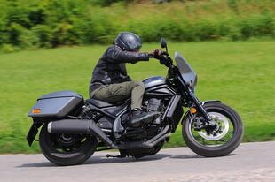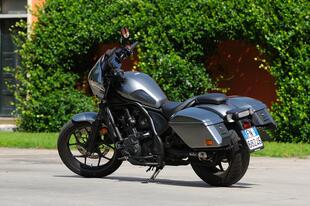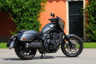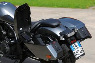 La Honda Rebel 1100 monta invece un bicilindrico parallelo bialbero di 1.084 cm³ (quello dell'Africa Twin, per intenderci) con una potenza di 88,4 CV dichiarati (non abbiamo potuto verificare il dato alla ruota) ed è disponibile solo in versione DCT, cioè con cambio automatico sequenziale a doppia frizione e comandi al manubrio. È l'unica custom automatica sul mercato, grazie all'alimentazione gestita elettronicamente da un comando ride-by-wire ci sono 3 riding mode predefiniti (Sport, Standard, Rain) e 2 personalizzabili dal pilota. La dotazione elettronica include controllo di trazione, anti impennata, cruise control e ovviamente ABS. L'impianto frenante anche in questo caso sfrutta un grosso disco anteriore di 330 mm, sul quale agisce una pinza ad attacco radiale, mentre al retrotreno c'è un disco di 256 mm con pinza a due pistoncini. L'allestimento Tour della moto in prova è, fra i tre disponibili nel catalogo Honda, il più costoso e offre di serie le borse rigide (16 litri la destra, 19 la sinistra) e la carenatura.