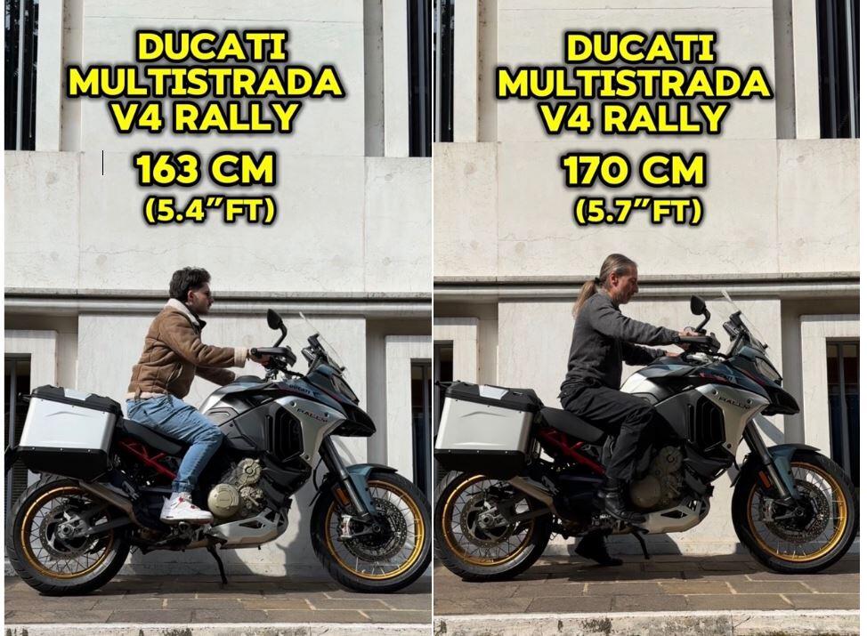 La Multistrada V4 Rally è una crossover pronta a tutto: strada, fuoristrada e viaggi anche in coppia. Ma a chi calza meglio? Per capirlo, vediamo come "veste" su corporature e altezze differenti