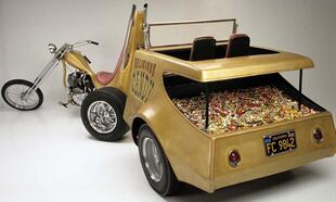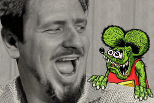 Ed Roth posa con la sua creatura di maggior successo: Rat Fink