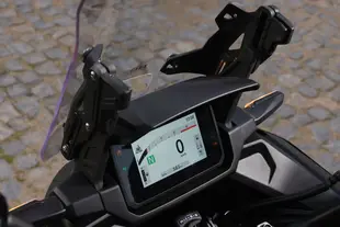 L'elettronica della Transalp rappresenta un punto di forza significativo. Il pacchetto include sei riding mode: quattro predefinite (Sport, Standard, Rain e Gravel) più due mappature "User" completamente personalizzabili dal pilota. Le combinazioni possibili sono numerose grazie ai quattro livelli di erogazione della potenza, tre livelli di freno motore, due livelli di ABS e cinque livelli del controllo di trazione HSTC che integra anche il sistema antimpennata. Il controllo di trazione e l'ABS al posteriore possono essere disattivati per la guida in fuoristrada. Bello e completo il display TFT a colori da 5 pollici che si connette allo smartphone tramite app dedicata, consentendo la gestione di telefonate, messaggi, musica e navigazione. Il blocchetto di sinistra è retroilluminato e dotato di joystick a quattro vie per navigare agevolmente tra i menu del cruscotto.