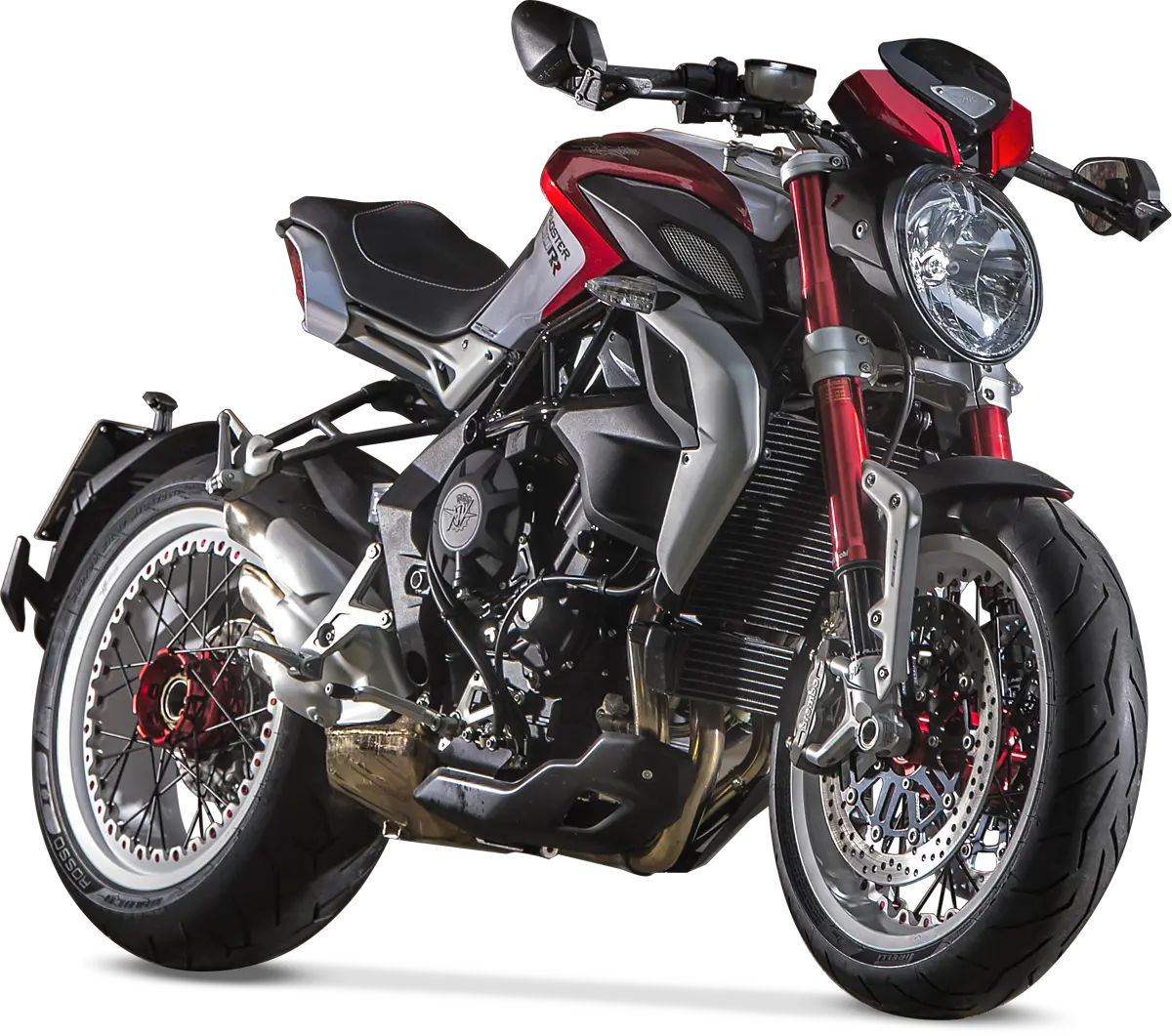 sospensione anteriore Marzocchi oleodinamica a steli rovesciati con sistema di regolazione esterno e separato del freno in estensione, in compressione e del precarico molla