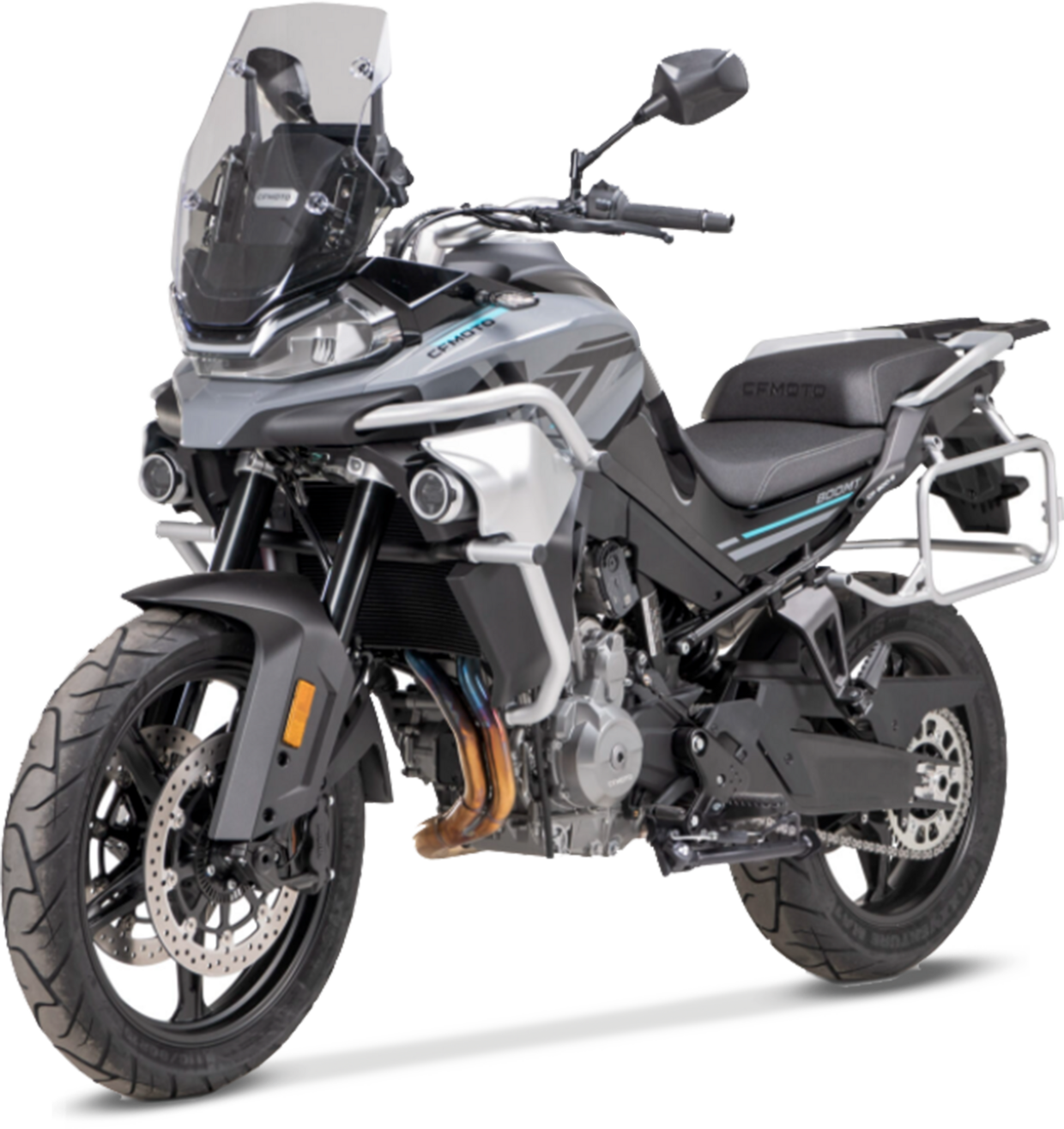 È l'ammiraglia delle crossover CFMoto, adatta anche ai lunghi viaggi e capace di mantenere velocità elevate grazie al bicilindrico frontemarcia di derivazione KTM, potente ma caratterizzato da un'erogazione regolare che non mette mai in difficoltà. Il pacchetto di elettronica include una piattaforma inerziale a sei assi che gestisce due riding mode (Rain e Sport), l’ABS cornering, il cruise control e il cambio elettronico, manca però il controllo di trazione. La dotazione di serie comprende anche sella e manopole riscaldate, paramani e protezione carter motore. La ciclistica utilizza un telaio a doppio trave con forcellone bibraccio in alluminio e sospensioni Kayaba regolabili. La posizione di guida è comoda, mentre il peso si sente in manovra e a bassa velocità. Stabile sul dritto, la MT è progressiva nello scendere in piega e sicura a tutte le andature. Bene i freni, potenti e modulabili.