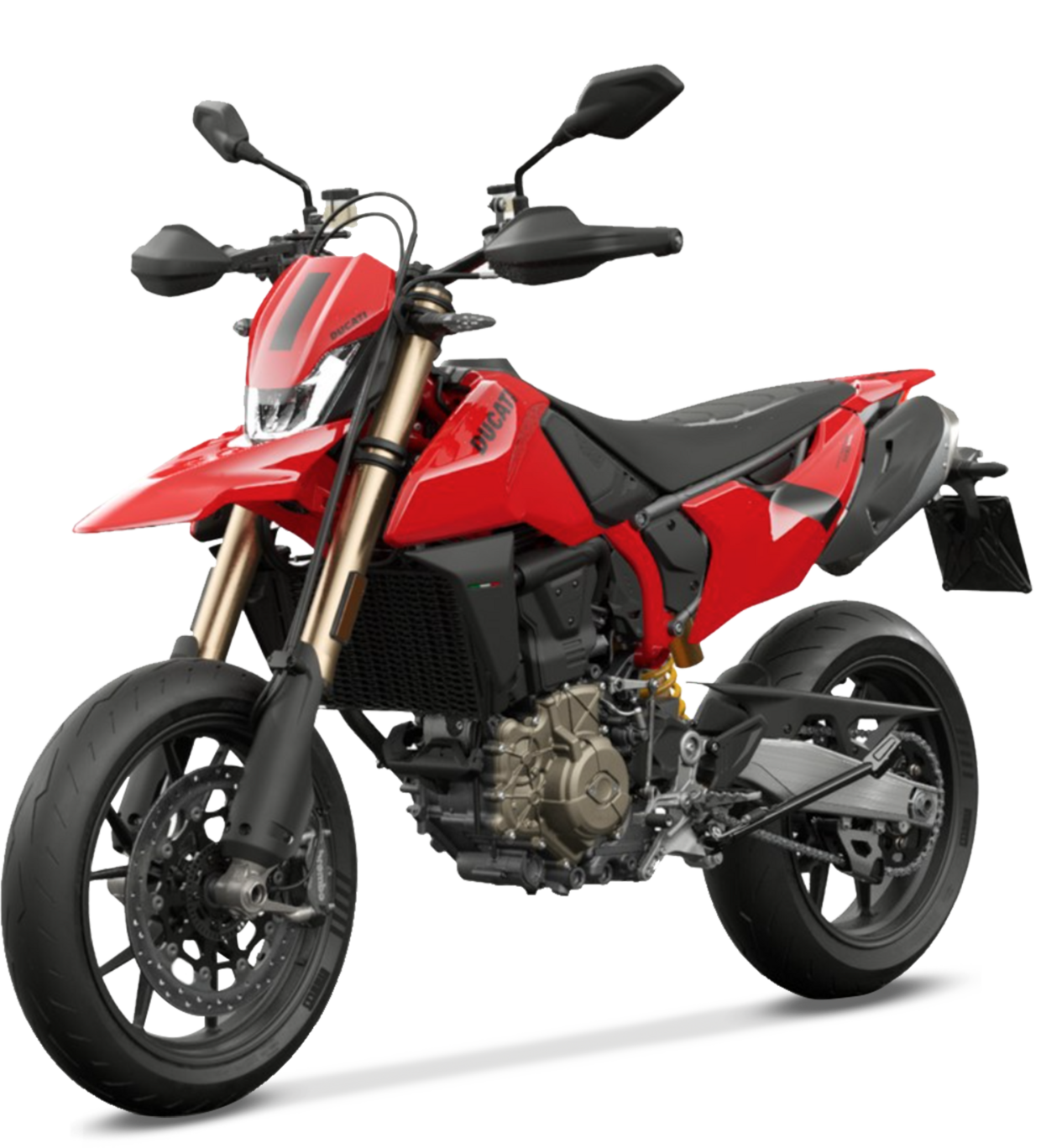È una supermotard monocilindrica raffinata, pensata per emozionare sulle strade di montagna, e in pista ma anche per muoversi in città. All’anteriore sfodera una forcella Marzocchi a steli rovesciati da 45 mm, al posteriore un ammortizzatore Sachs, entrambi sono completamente regolabili. I freni possono contare su un disco anteriore da 330 mm con pinza radiale a quattro pistoncini e un disco posteriore da 240 mm. La posizione di guida è eretta e d’attacco, ma tutto sommato comoda: manubrio largo e pedane centrate la rendono piuttosto confortevole, ma la sella (alta e ben imbottita) è stretta per favorire i movimenti nella guida sportiva. Il monocilindrico scalda e spinge forte già ai bassi regimi ed è velocissimo nel salire di giri. Ai medi l’erogazione è corposa e l’allungo è impressionante, per fortuna tutto è tenuto a bada da un'elettronica completissima. Tra le curve è disarmante per leggerezza e precisione dell’avantreno e più in generale per il comportamento della ciclistica, rigorosa sul veloce e reattiva nello stretto.