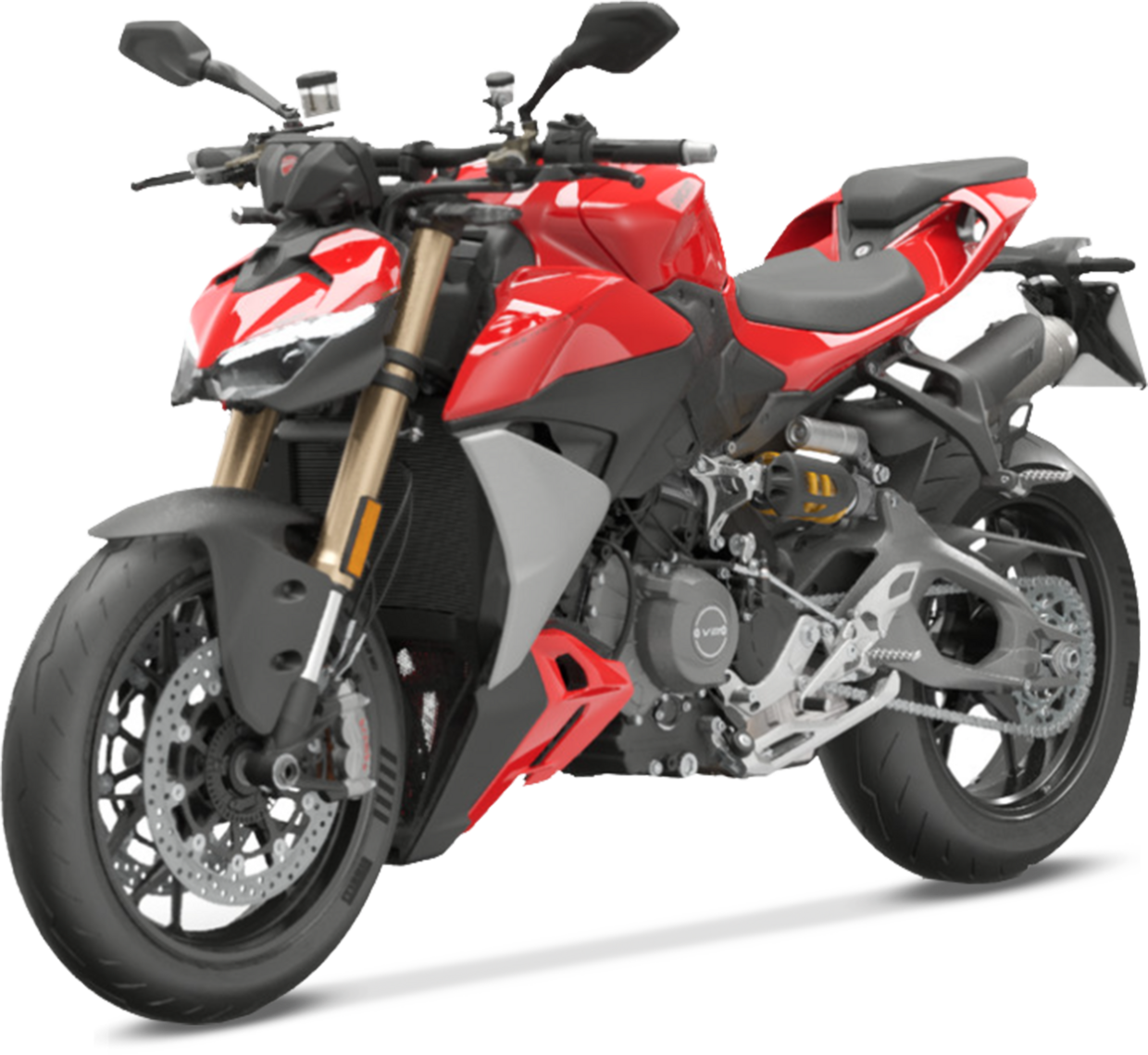 La Streetfighter V2 è il modello di accesso alla famiglia delle naked super sportive di Borgo Panigale. Oltre al cambio quickshift, la dotazione di elettronica comprende tra gli altri quattro riding mode, controllo di trazione e ABS cornering, che si gestiscono tramite il cruscotto TFT da 4,3”. La forcella è completamente regolabile, come il monoammortizzatore, mentre la versione S monta sospensioni Öhlins e batteria al litio. La posizione di guida è caricata sull’anteriore, ma con il manubrio largo e le pedane poco arretrate si può stare in sella a lungo senza stancarsi troppo. Il motore spinge forte ai bassi, poi l’erogazione ai medi si fa più progressiva e diventa cattiva agli alti, quando si scatena la “cavalleria”. Tra le curve veloci l’avantreno segue i movimenti del pilota con poco sforzo, mentre nello stretto bisogna “spingere” sul manubrio. Va meglio in pista, dove si usa di più il corpo e così questo difetto svanisce. La frenata all’anteriore richiede un po’ di forza sulla leva (ma solo in pista).