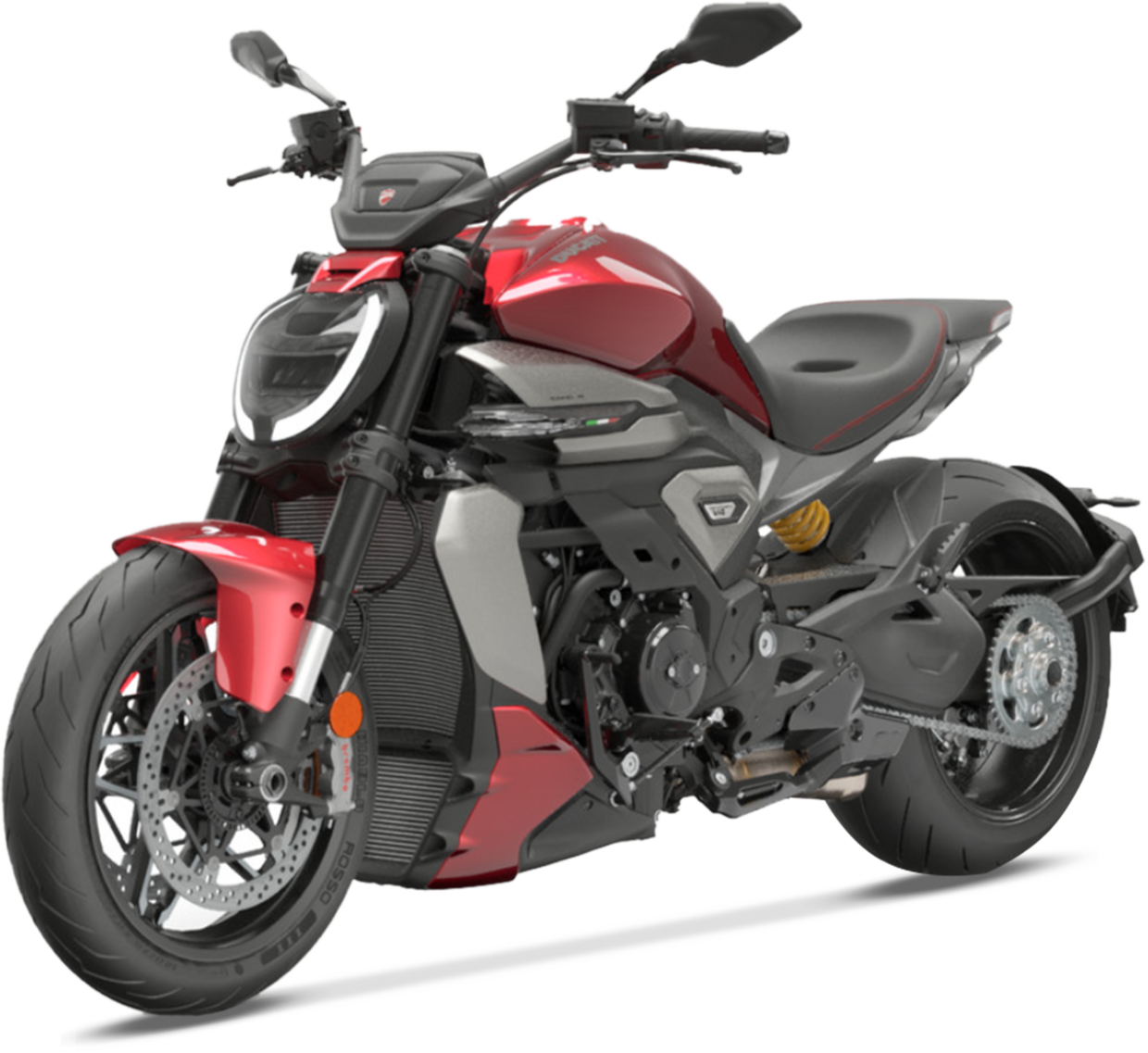 Sulla X-Diavel tutto è pensato per catturare l’occhio, anche il forcellone monobraccio in alluminio che lascia libero alla vista il cerchio posteriore con il “gommone” 240/45. Il manubrio è arretrato e non troppo alto per caricare l’avantreno, mentre la sella è bassa e spaziosa. Tra gli accessori c’è un codino che permette di trasformarla in monoposto, per chi invece vuole spingere sulla guida c’è un kit optional per modificare la posizione in sella spostando le pedane in posizione più arretrata. Spettacolare il motore V4 Granturismo di 1158 cm³, con l’albero motore controrotante che riduce l’effetto giroscopico aumentando l’agilità, tenuto a bada da un’elettronica abbondante: tre Power Mode e quattro Riding Mode, oltre a Traction Control Cornering, Wheelie Control e ABS Cornering, Cruise Control e cambio elettronico bidirezionale.