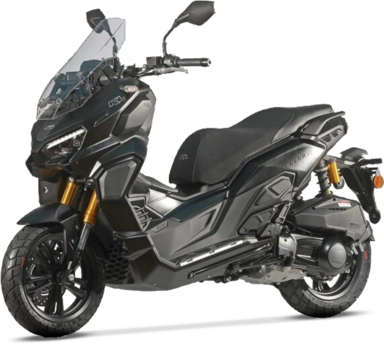 È uno scooter crossover in grado di affrontare anche le “strade bianche”. Buona la dotazione di serie, ci sono cruscotto con schermo TFT, smart key, presa USB (in una tasca nel retroscudo) e manopole riscaldabili su quattro diverse intensità di calore. La ciclistica è di qualità: telaio in tubi d’acciaio, forcella a steli rovesciati da 35 mm e due ammortizzatori KYB. L’impianto frenante è composto da un disco anteriore da 240 mm con pinza radiale a 4 pistoncini e un disco posteriore da 220 mm, entrambi con profilo a margherita. Integrati nel codone ci sono gli agganci per montare le valigie laterali che migliorano la capacità di carico: il vano sottosella è poco profondo, ci sta solo un casco jet. Il motore 300 garantisce un’accelerazione vigorosa e l’agilità è ottima. Buono il riparo dello scudo e meno quello del parabrezza.