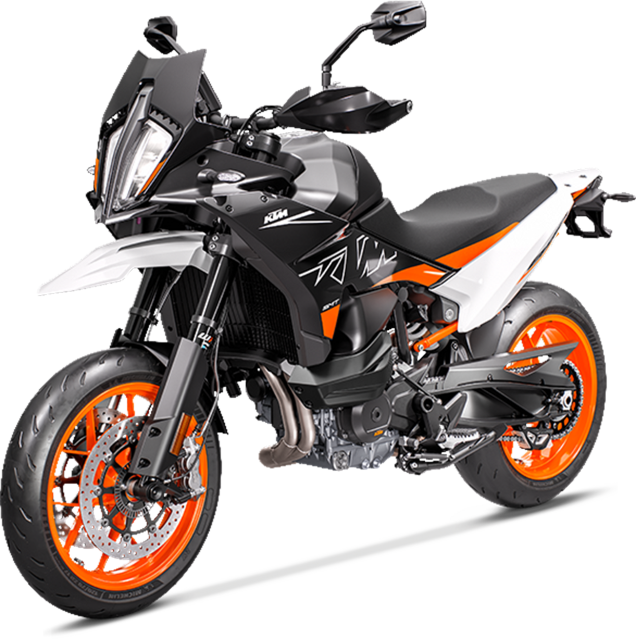 A primo sguardo sembra una motardona, ma invece la SMT è (anche) altro, si tratta di una crossover sportiva, capace di divertire sulle strade di montagna ma anche buona per fare qualche viaggetto. È spinta da un motore bicilindrico parallelo, inserito in un telaio a traliccio in tubi, mentre le sospensioni sono WP Apex com forcella a steli rovesciati da 43 mm e monoammortizzatore, entrambi completamente regolabili e con un'escursione di 180 mm. I cerchi sono da 17” e montano pneumatici stradali. Anche i freni sono all’altezza della situazione: all’anteriore due dischi di 320 mm con pinze radiali a quattro pistoncini, al posteriore un disco di 260 mm con pinza a due pistoncini. L’elettronica di bordo prevede Traction Control e ABS Cornering e tre Riding Mode (Rain, Street e Sport). La posizione di guida è sportiveggiante, con la sella dura e a 86 cm da terra e il pilota ben caricato sull’anteriore. Nel misto si viaggia veloci, grazie al motore bello pronto e al peso contenuto. Scarso il riparo dall’aria.