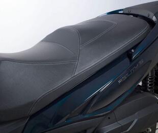 La sella ampia può ospitare comodamente due persone, mentre il tunnel centrale, dove è alloggiato il serbatoio della benzina, lascia spazio per caricare uno zainetto.