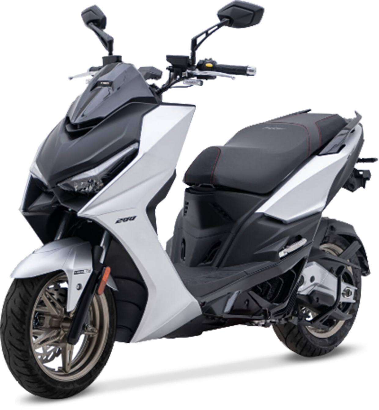 Il KRV è uno scooter molto sportivo che sfoggia un potente motore montato in posizione avanzata per migliorare la distribuzione dei pesi e migliorare la tenuta di strada. Da notare anche i due freni a disco a margherita, le sospensioni di tipo tradizionale (forcella telescopica e monoammortizzatore) e i cerchi da 13 pollici. La trasmissione finale è a cinghia e il sottosella può caricare un casco integrale. La dotazione di serie comprende, oltre all'ABS obbligatorio, il controllo di trazione, l'avviamento con telecomando keyless, i fari full-led e la presa USB. Il motore risponde pronto al comando del gas e al semaforo scatta con grinta: in accelerazione sembra quasi di avere tra le mani un 300. La guida è molto divertente, ma buche e pavé si sentono.