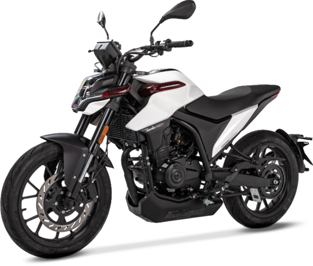 È una naked da ragazzi aggressiva, compatta ma con una buona abitabilità. Il motore monocilindrico ha consumi ridotti (2,6 litri per 100 km) e un’erogazione fluida e (quasi) vigorosa per essere un 125. Il telaio è in acciaio, mentre al comparto sospensioni troviamo una forcella a steli rovesciati e un classico monoammortizzatore. La dotazione di serie comprende l’ABS (non obbligatorio sui 125), fari a LED, display TFT e una doppia presa USB sopra il radiatore. La posizione di guida è corretta, la sella è ben imbottita: peccato per le vibrazioni avvertibili dai 6.000 giri su manubrio e pedane.