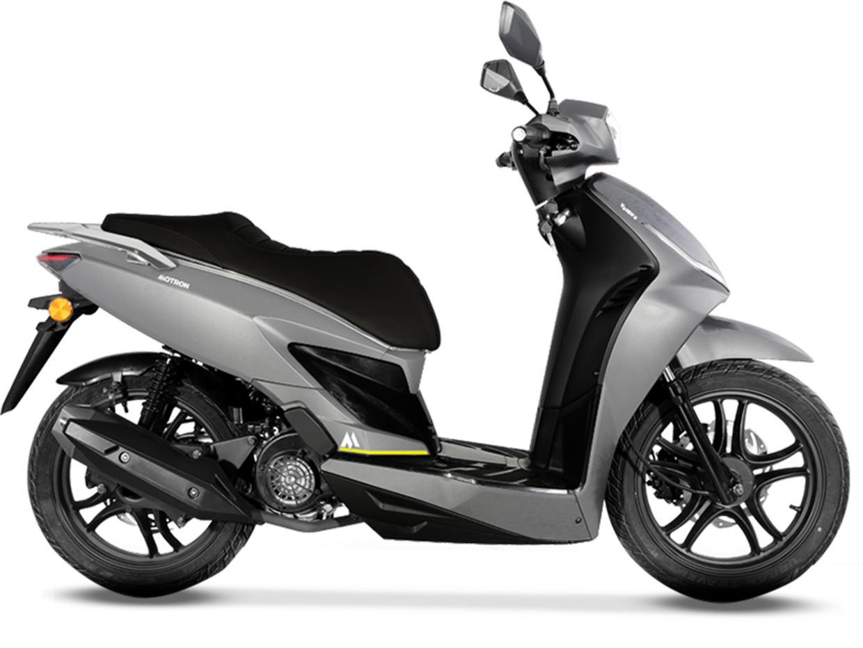 È il classico “ruote alte” con pedana piatta, linee moderne, ampio scudo con fanale sul manubrio e codino filante. I cerchi sono entrambi da 16”, la sella è lunga e lo spazio per le gambe abbondante. Il motore è abbastanza brillante, ha un discreto spunto ed è in grado di raggiunge i 90 km/h di velocità massima. Bassi i consumi: Motron dichiara 2,6 litri per 100 km. I freni sono entrambi a disco con sistema combinato, le sospensioni fanno sentire buche e pavé.