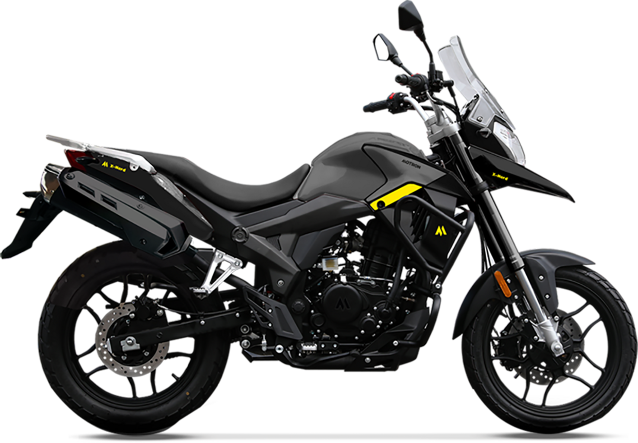 Costruita con soluzioni classiche ma valide, la crossover di Motron è spinta da un monocilindrico raffreddato a liquido caratterizzato da un’erogazione tranquilla ai bassi, mentre ai medi spinge con discreto vigore, allungando brillante (con leggere vibrazioni su manubrio e pedane). Il telaio è in acciaio, mentre le sospensioni (forcella a steli rovesciati e monoammortizzatore) incassano bene le buche. L’impianto frenante fa affidamento su due dischi (da 265 mm all’anteriore e 240 mm al posteriore) e un sistema combinato da migliorare: la leva al manubrio va strizzata, mentre il comando posteriore ha una risposta piuttosto brusca. La dotazione di serie comprende poi un piccolo parabrezza, il cruscotto misto analogico-digitale dotato di presa USB e le robuste barre che proteggono motore e serbatoio in caso di caduta.