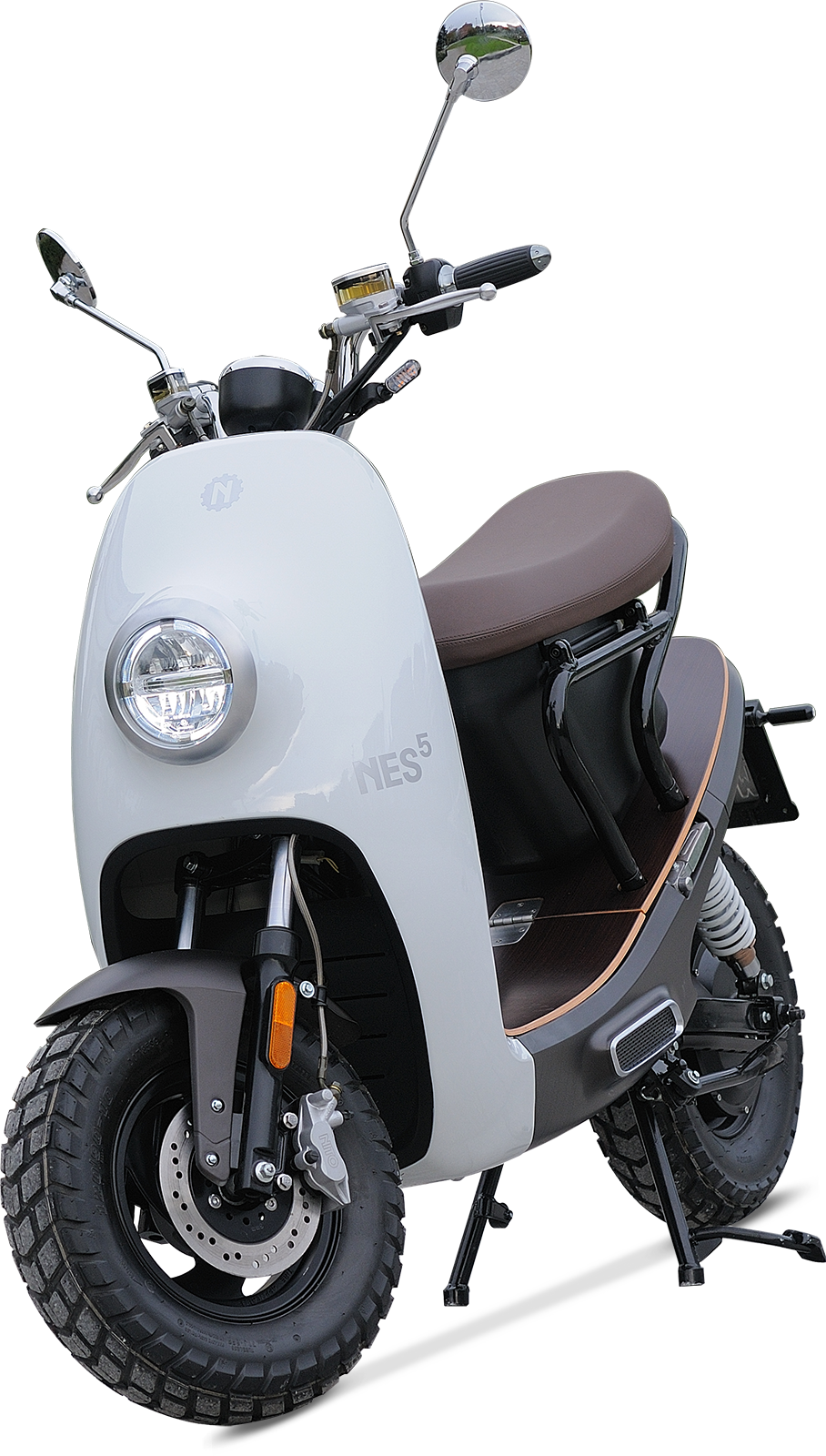 Realizzato dalla torinese Nito Bikes con design rigorosamente “made in Italy” (Cesar Mendoza, fondatore di Nito, è un designer di fama), è caratterizzato da una pedana piatta rivestita in legno, che arriva fino alla coda. Monta ruote piccole (10 pollici) e pneumatici scolpiti molto larghi, mentre il motore è inserito nel cerchio posteriore, ad alimentarlo provvede una batteria removibile nascosta in un vano sotto la pedana. Non c’è sottosella, ma come optional si può montare un piccolo box dove riporre un caschetto, oppure il caricabatteria. L’impianto frenante sfrutta 2 dischi dotati di sistema combinato, di serie l’avviamento con telecomando smart key, presa USB e il cruscotto digitale che si connette allo smartphone tramite app. L’abitabilità è buona, la pedana è ampia e lo scudo lontano dalle ginocchia, ma la sella è poco imbottita. L’agilità è elevata, mentre il comfort è solo discreto: gli ammortizzatori fanno il loro dovere, ma la forcella è rigida. Le ruote larghe in compenso digeriscono qualsiasi buca. A punto i freni.