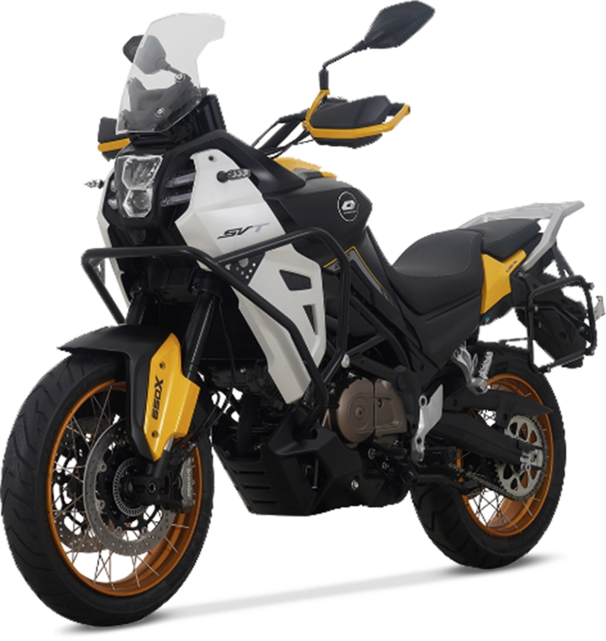 Nell’ampia gamma di adventure del marchio cinese, la SVT ha una interessante peculiarità: è infatti l’unico modello spinto da un bicilindrico a V, capace di 76 cavalli. Dimensioni e abitabilità sono quasi da maxi, così come la dotazione di serie, che include anche il tris di valigie in alluminio (non presenti in questa prova). Alle ottime doti da passista stradale non corrisponde una vera predisposizione per la guida offroad, si possono comunque affrontare senza timori tratti sconnessi e strade bianche.