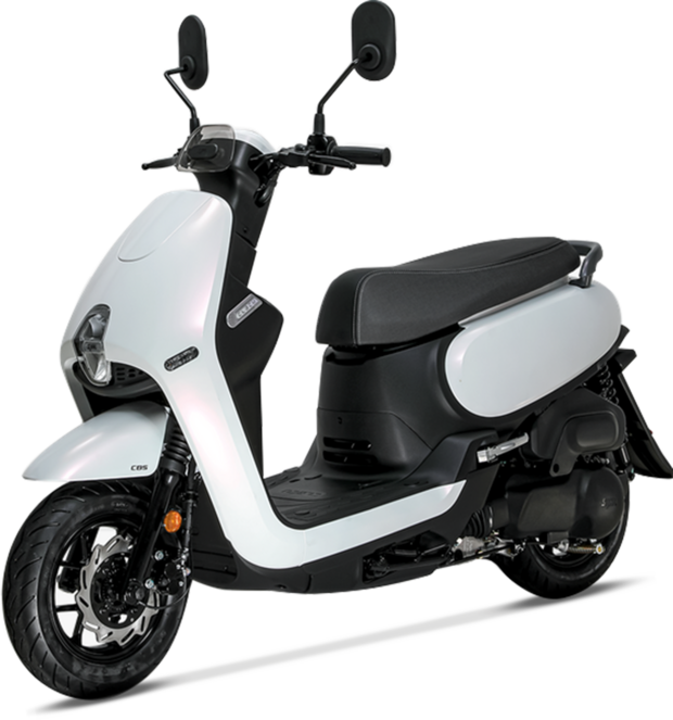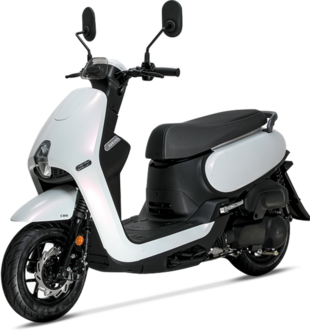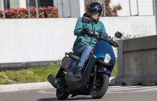 È uno scooterino da città con linee personali e ruote piccole con pneumatici stretti, una soluzione poco diffusa, ma efficace per esaltare la maneggevolezza e avere sella ed assetto bassi. L’impianto frenante invece vede al lavoro un disco anteriore e un tamburo al posteriore, controllati da un sistema combinato. Nel retroscudo niente vani, ma ci sono il gancio portaborse, il tappo della benzina che si sblocca girando la chiave di contatto e, sotto al manubrio, la presa USB per ricaricare il cellulare. Nel sottosella invece ci sta un casco jet. Le dimensioni compatte limitano lo spazio a disposizione del pilota, la posizione di guida è raccolta perché la pedana (piatta ma alta) porta ad avvicinare le ginocchia al busto: chi supera i 170 cm di altezza sta un po’ rannicchiato. In città il peso contenuto e la sella bassa consentono di manovrarlo con facilità. Il motore è vivace nelle partenze e ha un’erogazione fluida.