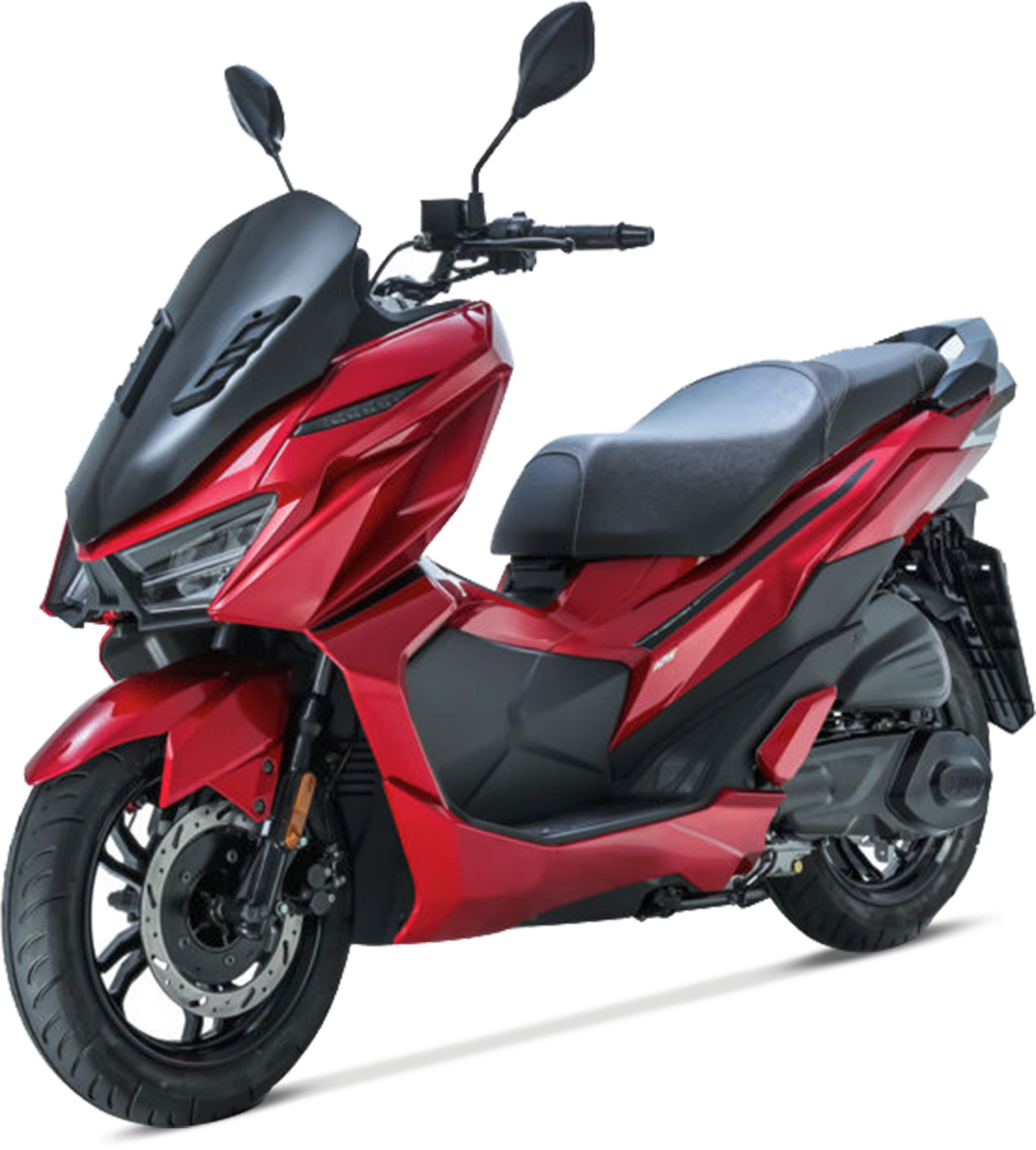 È lo scooter sportivo di SYM dedicato ai più giovani, ha linee taglienti, manubrio a vista in stile naked e una dotazione ricca che comprende accensione con telecomando smart key e controllo di trazione TCS (disinseribile). Il parabrezza di serie è basso e non protegge il pilota dall’aria, mentre la pedana poggiapiedi è ingombrata dal grosso tunnel centrale che limita lo spazio per i piedi, discreto invece quello per le gambe. La sella è comoda e offre spazio più che sufficiente anche per il passeggero. Ok l’impianto frenante, è dotato di due dischi: da 260 mm all’anteriore e da 220 mm al posteriore, tenuti sotto controllo da un sistema combinato. Classica la ciclistica: telaio in tubi d’acciaio, forcella telescopica e doppio ammortizzatore posteriore regolabile nel precarico. Il peso contenuto garantisce un’elevata maneggevolezza. Il cruscotto ha un display LCD dotato di luminosità automatica che si adatta alla luce ambientale. Il vano sottosella è sufficiente per un casco integrale ed è dotato di presa USB 2.0 per ricaricare velocemente il cellulare.