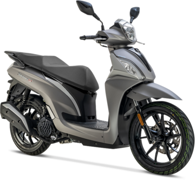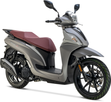 La famiglia dei ruote alte SYM è ampia. Il Sympony "base" è compatto quanto basta per infilarsi senza problemi tra le auto in coda, va bene per tutte le stature: ha la sella bassa e la pedana piatta ma stretta (c’è giusto lo spazio per i piedi). Il vano sottosella può accogliere solo un casco jet con visiera, ma di serie c’è anche il bauletto con poggiaschiena per il passeggero.