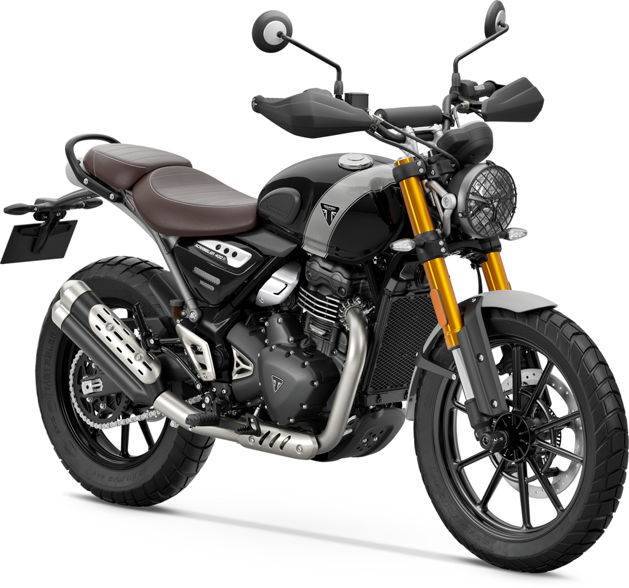 È la versione più "fuoristradistica" delle 400 di Triumph, infatti monta una ruota anteriore da 19” e sospensioni con un’escursione maggiorata. Comoda la posizione di guida con il manubrio largo e la sella ben imbottita posta a 83,5 cm da terra. Il motore è un monocilindrico da 398 cc raffreddato a liquido, il telaio in acciaio è abbinato a un forcellone in alluminio, mentre la forcella è una Showa Big Piston con steli da 43 mm "fissa", il monoammortizzatore invece è regolabile nel precarico. Sul fronte dell’elettronica ci sono l'acceleratore ride by wire e il controllo di trazione e l'ABS disattivabili per godersi la guida di traverso in fuoristrada. In sella c’è tanto spazio, il pilota può avanzare o arretrare ma l’impostazione è sempre corretta. In movimento ci si sente sempre a proprio agio grazie all’assetto ben bilanciato, la ciclistica invoglia a viaggiare a ritmo rilassato, ma quando si decide di divertirsi basta usare un po’ di decisione per passare da una curva all’altra con rapidità. L’erogazione è fluida e l’allungo grintoso, con vibrazioni limitate e per nulla fastidiose. Bisogna invece fare l’abitudine all’impianto frenante che richiede una certa forza sui comandi per rallentare con decisione, ma in fuoristrada va benissimo così.