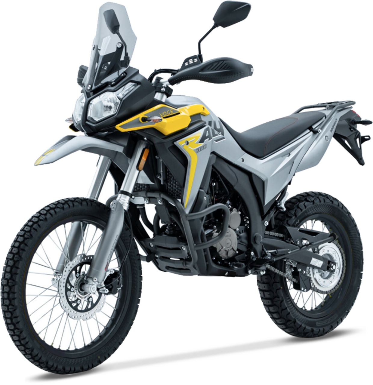 Questa piccola crossover è snella e ha un peso tutto sommato contenuto, ma occhio alla sella che è piuttosto alta: chi è sul metro e settantacinque tocca in punta di piedi. Da off-road i cerchi (rigorosamente a raggi): 21 pollici l’anteriore e 18 pollici il posteriore, che calzano pneumatici semitassellati. A spingerla c’è un moderno monocilindrico quattro tempi raffreddato a liquido. Per quanto riguarda la ciclistica c’è un telaio a doppia culla in acciaio a cui sono abbinate una forcella a steli rovesciati da 37 mm e un monoammortizzatore regolabile nel precarico. L’impianto frenante si affida a due dischi con profili a margherita, uno anteriore da 265 mm e uno posteriore da 220 mm. Accanto al motore ci sono barre in acciaio che proteggono i carter in caso di cadute sempre possibili quando si affrontano percorsi in fuoristrada. La dotazione si completa con paramani e una piccola parabrezza che fa sognare viaggi “avventurosi”.