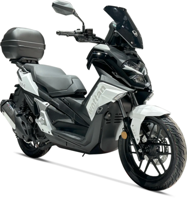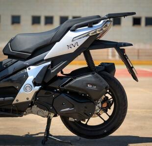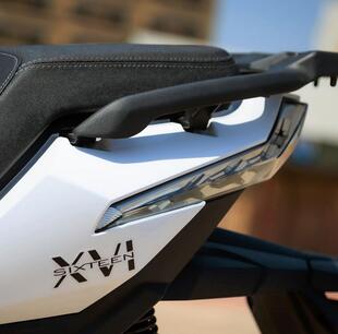 È uno scooter pratico e comodo: ha ruota anteriore da 16 pollici, posteriore da 14 pollici e scudo protettivo. Nel sottosella c’è spazio per un piccolo casco jet a cui si aggiunge un portaoggetti nel retroscudo. Il Sixteen non trascura l’aspetto più importante per chi si muove nel traffico quotidiano: la sicurezza. Il pacchetto di elettronica comprende l’ABS a doppio canale (non obbligatorio sui 125) che gestisce due dischi (240 mm all’anteriore e 220 mm al posteriore) e il controllo di trazione, una rarità in questa fascia di prezzo, che permette di muoversi senza patemi su fondi difficili o bagnati. Il telaio tubolare in acciaio, la forcella da 31 mm e il doppio ammortizzatore posteriore completano il pacchetto della ciclistica. La dotazione comprende poi parabrezza regolabile su due livelli, cruscotto con display TFT a colori da 7”, con connettività Bluetooth, mirroring e navigazione GPS turn-by-turn, accensione Smart Key con sistema Keyless, sistema Start&Stop e fari full LED.