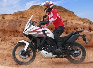 Questa crossover media unisce elementi “stradali” come il telaio in alluminio e il motore tre cilindri ad altri “avventurosi” come i cerchi a raggi con anteriore da 21 pollici e le sospensioni a lunga escursione. Le sospensioni sono regolabili, mentre l’impianto frenante sfoggia all’anteriore pinze radiali e dischi da 310 mm. L’elettronica comprende poi due mappature, cambio quick shift, controllo di trazione e ABS disinseribili. La dotazione comprende anche accensione keyless, cruscotto TFT “connesso”, paramani, piastra paramotore, prese USB, parabrezza regolabile elettricamente, manopole riscaldabili e telecamere anteriore e posteriore. Il comfort di marcia è elevato, il tre cilindri ha una buona spinta, ma all’attacco del gas, a bassa velocità, ha un evidente effetto on/off che poi sparisce ai medi regimi. A punto la ciclistica: le sospensioni hanno una taratura corretta per la guida su strada, ma non soffrono sullo sconnesso e nel fuoristrada leggero. L’avantreno è stabile e preciso, ma nello stretto non è rapidissimo nell’impostare le curve. La frenata è potente quanto basta ma mai aggressiva.