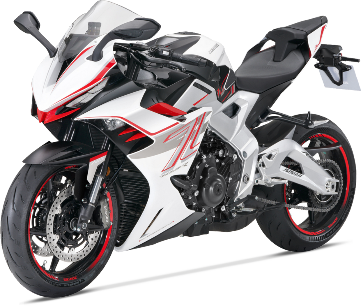 La sportiva cinese è spinta dal motore tre cilindri progettato e costruito dalla casa cinese. È dotato di due modalità di guida, Eco e Sport, il controllo di trazione, c’è la frizione anti saltellamento e il cambio a sei marce è dotato di quickshifter monodirezionale, cioè solo per aumentare il rapporto. Il telaio a doppia trave impiega il motore come elemento stressato ed è in alluminio pressofuso, così come il forcellone a due bracci. Sospensioni e freni sono all’insegna del Tricolore: sospensioni Marzocchi con forcella completamente regolabile e monoammortizzatore regolabile nel precarico e nell'estensione, l’impianto frenante Brembo è costituito da due dischi di 300 mm con pinze a quattro pistoncini all’anteriore e uno di 240 mm al posteriore. Il cruscotto è costituito da uno schermo TFT LCD IPS a colori con quattro interfacce grafiche e luminosità adattiva, si collega al cellulare e tra le varie funzioni ha anche il controllo della pressione e temperatura pneumatici.