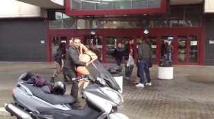 Video: fugge quasi nuda su un Burgman 650
