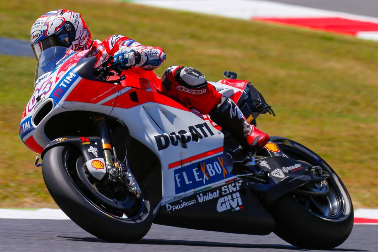 MotoGP news diretta TV – Il fine settimana del Mugello è iniziato molto bene per gli alfieri del team Ducati con Andrea Dovizioso secondo, Jorge Lorenzo decimo, e il collaudatore Michele Pirro quarto. Si tratta di una buona top 10 per le tre Desmosedici GP ufficiali dalle quali sulla pista di “casa” per Ducati ci si aspetta un buon risultato