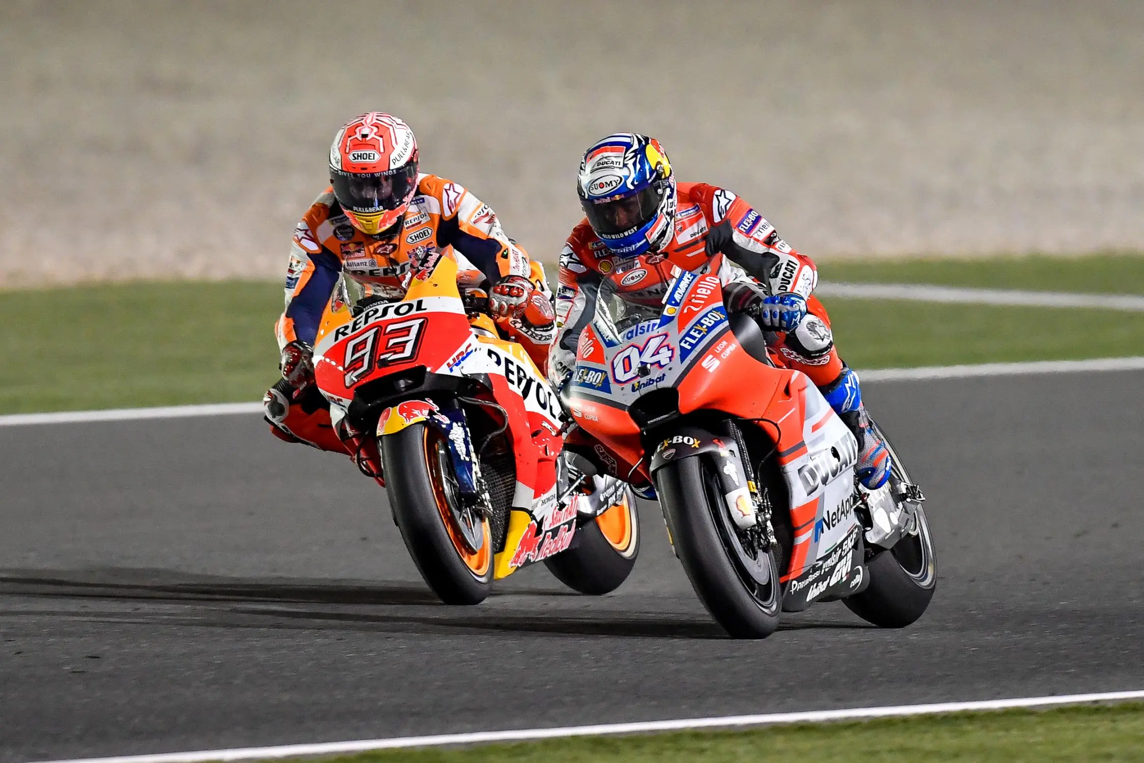 In Qatar la Ducati era favorita, ma la gara è stata tutt’altro che semplice per Andrea Dovizioso che, dopo una partenza difficile dalla seconda fila, si è ritrovato settimo alla fine del primo giro. Da lì il forlivese ha risalito la classifica giro dopo giro, arrivando a prendere la testa della corsa durante il diciottesimo giro. Il “Dovi” ha tentato la fuga, alla guida della sua Ducati Desmosedici GP18, ma non è riuscito a seminare l’inseguitore Marc Marquez, che l’ha tallonato fino alla fine, quando nel corso dell’ultimo giro ha tentato il sorpasso. Dovizioso è riuscito a difendere la prima posizione, grazie all’incrocio di traiettorie, e ha tagliato il traguardo con soli 27 millesimi di vantaggio sulla Honda numero 93. Il portacolori Ducati ha raccontato: “Sono contentissimo di questa vittoria perché abbiamo confermato i miglioramenti che abbiamo fatto questo inverno e sono riuscito a gestire bene la gara, anche se ho fatto una partenza davvero pessima. Al via ho dovuto chiudere il gas, altrimenti mi sarei scontrato credo con Rins, ma poi ho iniziato a recuperare posizioni su posizioni cercando di non rovinare le gomme. Verso la fine, dopo aver superato Zarco, ho provato a creare un gap su Marquez e Rossi ma non avevo più grip e non sono riuscito a aumentare il mio vantaggio. Nell’ultima curva ho cercato di stare molto attento perché sapevo che Marquez avrebbe provato a passarmi, e in effetti è andata così. Lui ha chiuso la porta ancor più che in Austria e Giappone, ma io sono passato sul cordolo interno e poi ho sfruttato la potenza della mia Desmosedici per rimanere davanti. Ancora una volta una grandissima soddisfazione!” Con questa vittoria Dovizioso ha superato Loris Capirossi nella graduatoria dei piloti Ducati più vincenti in MotoGP, con otto gare al suo attivo, ed è ora al secondo posto in questa speciale classifica, dietro a Casey Stoner.