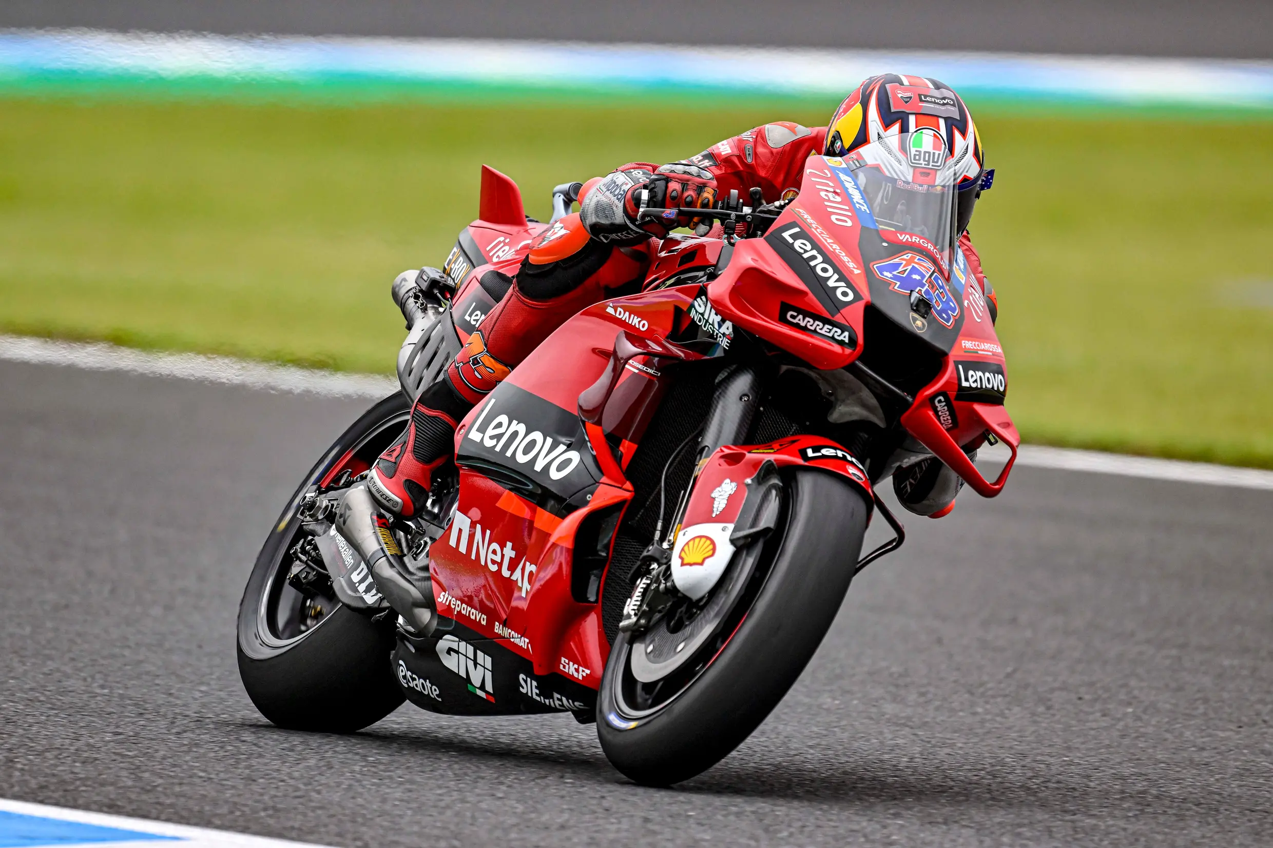 Le due Ducati ufficiali hanno aperto la classifica dei tempi della prima sessione di prove libere andata in scena a Motegi, in Giappone. Jack Miller è stato l’autore del miglior crono in 1’44.509 e ha preceduto il compagno di squadra Francesco Bagnaia per soli 28 millesimi. Nei 75 minuti a disposizione la coppia ha ripreso confidenza con la pista, dove non si correva dal 2019, e l’australiano è riuscito da subito a essere incisivo: “Sono soddisfatto di questa prima giornata a Motegi. Nonostante fosse da tre anni che non correvamo qui, siamo riusciti ad essere veloci fin da subito. Avere una sessione più lunga ci ha permesso di effettuare delle prove di setup che solitamente non abbiamo il tempo di fare e le modifiche che abbiamo apportato alla moto verso la fine del turno mi sono piaciute molto. In generale la nostra Desmosedici GP qui funziona bene e mi sto divertendo a guidarla. Domani è prevista pioggia, ma solitamente l’aderenza su questa pista è buono anche con l’asfalto bagnato, perciò sono fiducioso di poter fare bene in qualsiasi condizione”.