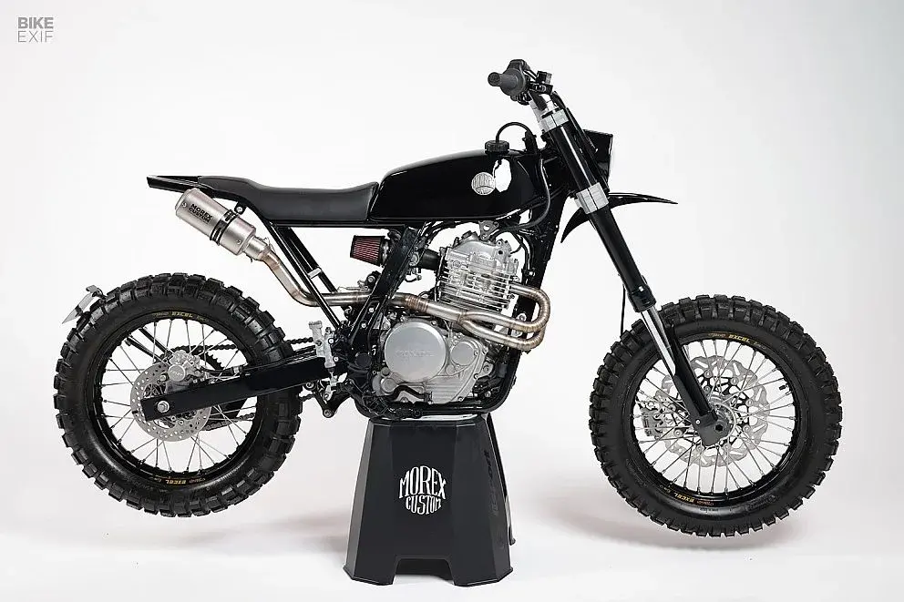 I fratelli Joan e Kévin Morel, insieme all'amico Valentin Pointeau, gestiscono Morex Custom in Bretagna e sono tutti e tre piloti motocross. Hanno preso una NX650 del 1992 e le hanno fatto un lifting ispirato alle moto moderne da enduro. Forcella rovesciata presa da una Yamaha WRF450 accorciate per darle un'impostazione supermotard, cerchi Excel da 18 pollici, disco freno maggiorato Braking. Il serbatoio viene da una Yamaha 125 DTMX, modificato per adattarsi al telaio Honda, mentre la carenatura del faro e i parafanghi sono stati disegnati al CAD e poi stampati in 3D con nylon rinforzato. Il risultato è una scrambler moderna che unisce l'affidabilità del vecchio monocilindrico Honda con un'estetica aggressiva e minimale.