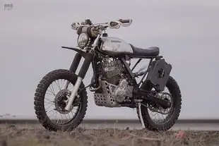Tristan Dewey è un compositore e tecnico del suono che vive a Bend Of Islands, vicino Melbourne. Non aveva un'officina, così ha costruito questa Dominator del 1996 sul pianale di un vecchio camion Bedford RL, con attrezzi limitati e facendo quasi tutto da solo. L'ha voluta come vera moto da adventure, da usare in maniera "seria" senza remore: "L'ho costruita per le mie colline locali, pensata per essere saltata, sbattuta, caduta e spesso sepolta nel fango". Il serbatoio è pieno di ammaccature - un vecchio serbatoio Honda 175 regalato da un amico - che dà al pilota il permesso di far cadere la moto senza troppe paure nei passaggi difficili. Ha ricostruito il motore con pistone Wiseco, montato una frizione idraulica Magura e carburatore Mikuni TM-42. Lo scarico in acciaio inox è stato saldato da lui stesso. Completano il tutto il serbapotio aggiuntivo fissato sul telaietto posteriore, dei paracolpi robusti con specchietti pieghevoli integratie sella in pelle di canguro. Non c'è verniciatura: Tristan ha preferito continuare a "modellare" il suo serbatoio nelle sue uscite più difficoltose.