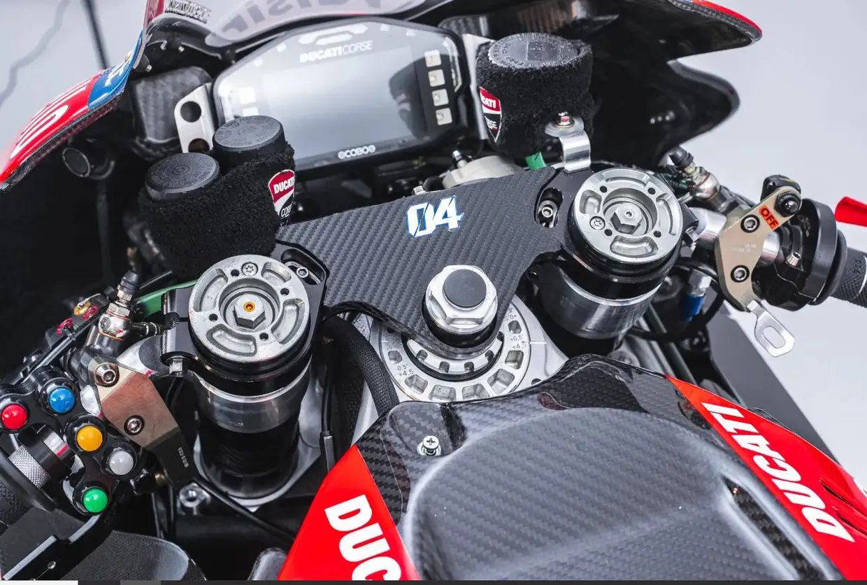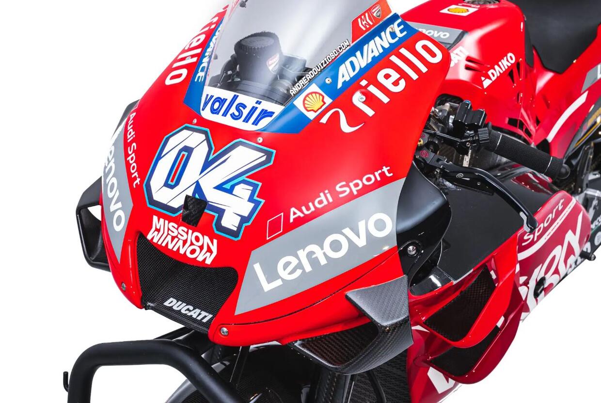 - La Ducati GP19 è dotata di un motore V4 di 1.000 cc raffreddato a liquido con cambio senza soluzione di continuità racchiuso in un telaio a doppia trave in lega di alluminio.