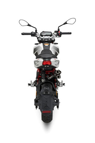 Non cambia invece la scheda tecnica di questo modello, caratterizzato dalla grande agilità e facilità di guida. A spingere la TNT125 rimane il monocilindrico dal 125cm3 a quattro tempi raffreddato ad aria, da 11,1 CV a 9500 giri/min e coppia di 10 Nm a 7000 giri. A livello ciclistico, troviamo invece all’anteriore una forcella upside-down con steli da 35 mm di diametro e al posteriore un forcellone oscillante con ammortizzatore laterale regolabile nel precarico molla ed escursione di 50 mm. I cerchi sono da 12 pollici e montano pneumatici 120/70 all’anteriore e 130/70 al posteriore. Di livello l’impianto frenante, composto da un disco singolo da 210 mm all’anteriore e uno da 190 mm al posteriore con CBS, cioè il sistema di frenata combinata che agisce indirizzando parte della forza frenante “attivata” dalla leva sul manubrio anche al posteriore.