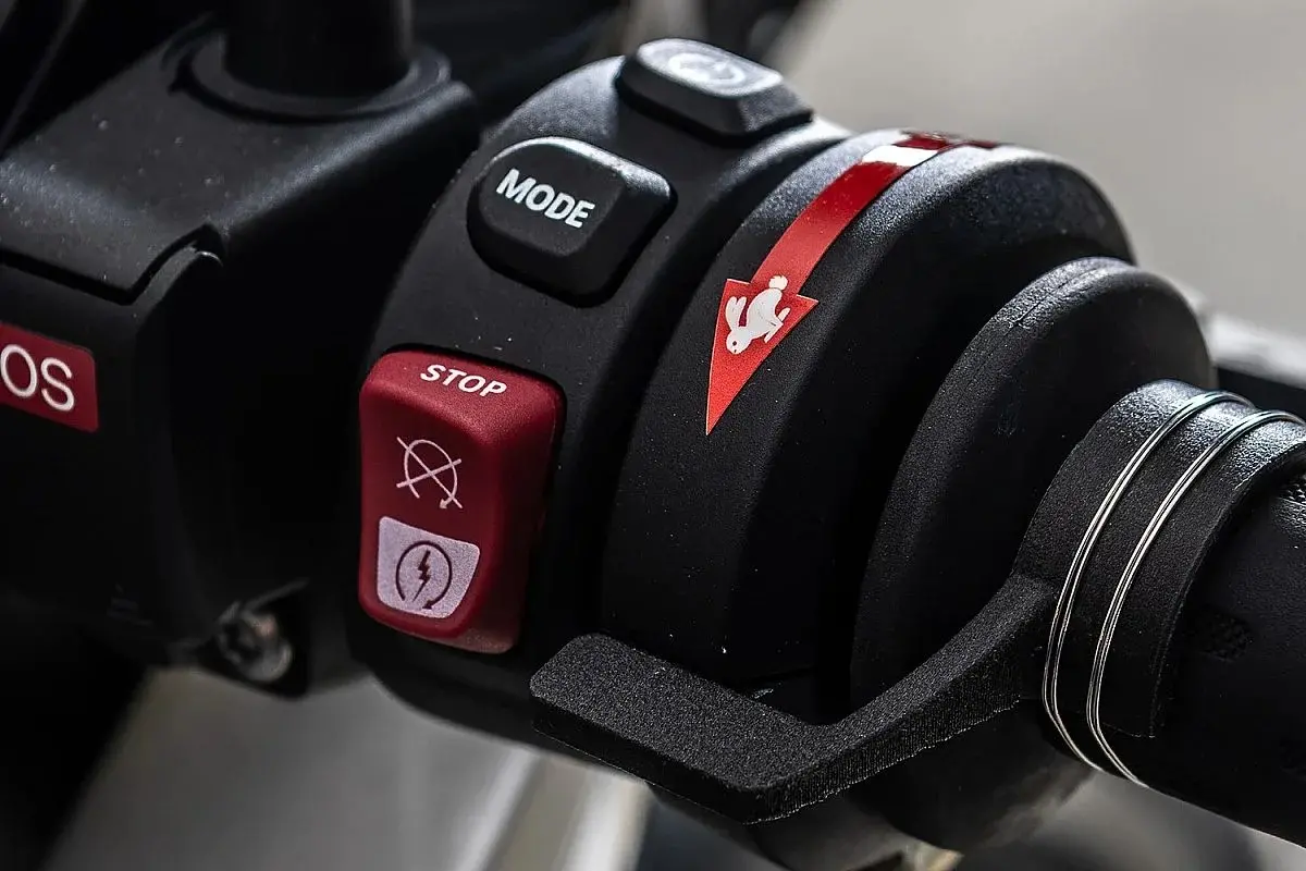 Ora veniamo alla “sostanza”. Il retrotreno è stato rialzato grazie a un ammortizzatore Wilbers, mentre i cerchi originali hanno lasciato posto a unità in fibra di carbonio Rotobox, leggere e raffinate. In basso, uno scarico in titanio by Unit Garage libera la voce del boxer, ormai privo di catalizzatore. La chicca sta però nel sistema NOS. Con l’aggiunta dell’protossido d’azoto, la potenza del boxer 1.170 cm³ sale dai 109 cavalli originali a 160, con possibilità di avere anche altri 25 CV in più. In realtà, il sistema è tarato per erogarne “solo” una cinquantina in più, il che basta e avanza per far decollare la moto sull’ottavo di miglio. Curioso l’escamotage con cui hanno risolto un imprevisto dell’ultimo minuto: il kit NOS era arrivato senza sensore di posizione del gas, indispensabile per attivare la spinta. Soluzione? Un microinterruttore e una levetta stampata in 3D montata sull’acceleratore…