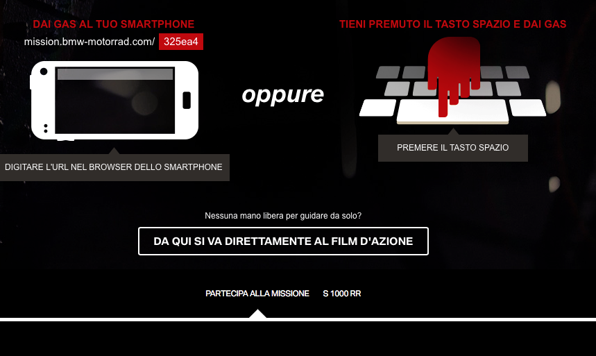 Una sorta di mini game online che lancia così la sfida: “Avvia il motore della tua RR, e accelera a tutto gas affronta la strada, supera le curve e raggiungi i tuoi obiettivi. Batti i tuoi record e lascia l’impossibile dietro di te. Dalla moto allo stile, abbiamo tutto ciò che ti serve per completare la tua mission”. Se siete in ufficio, occhio al volume degli altoparlanti, perchè i giri della RR si sentono tutti…