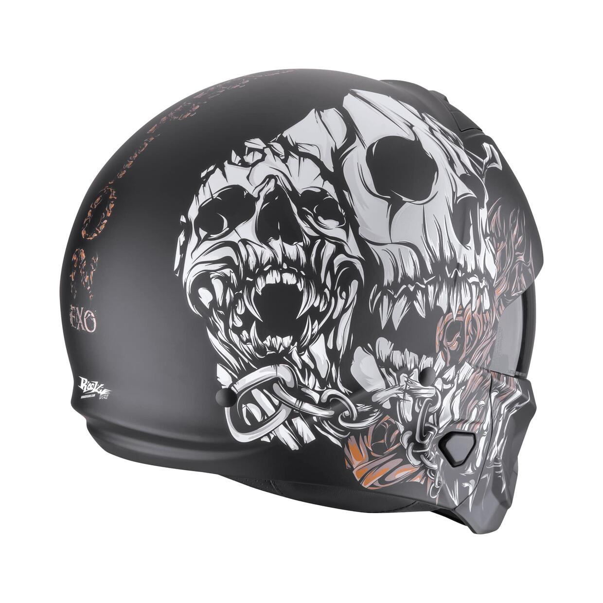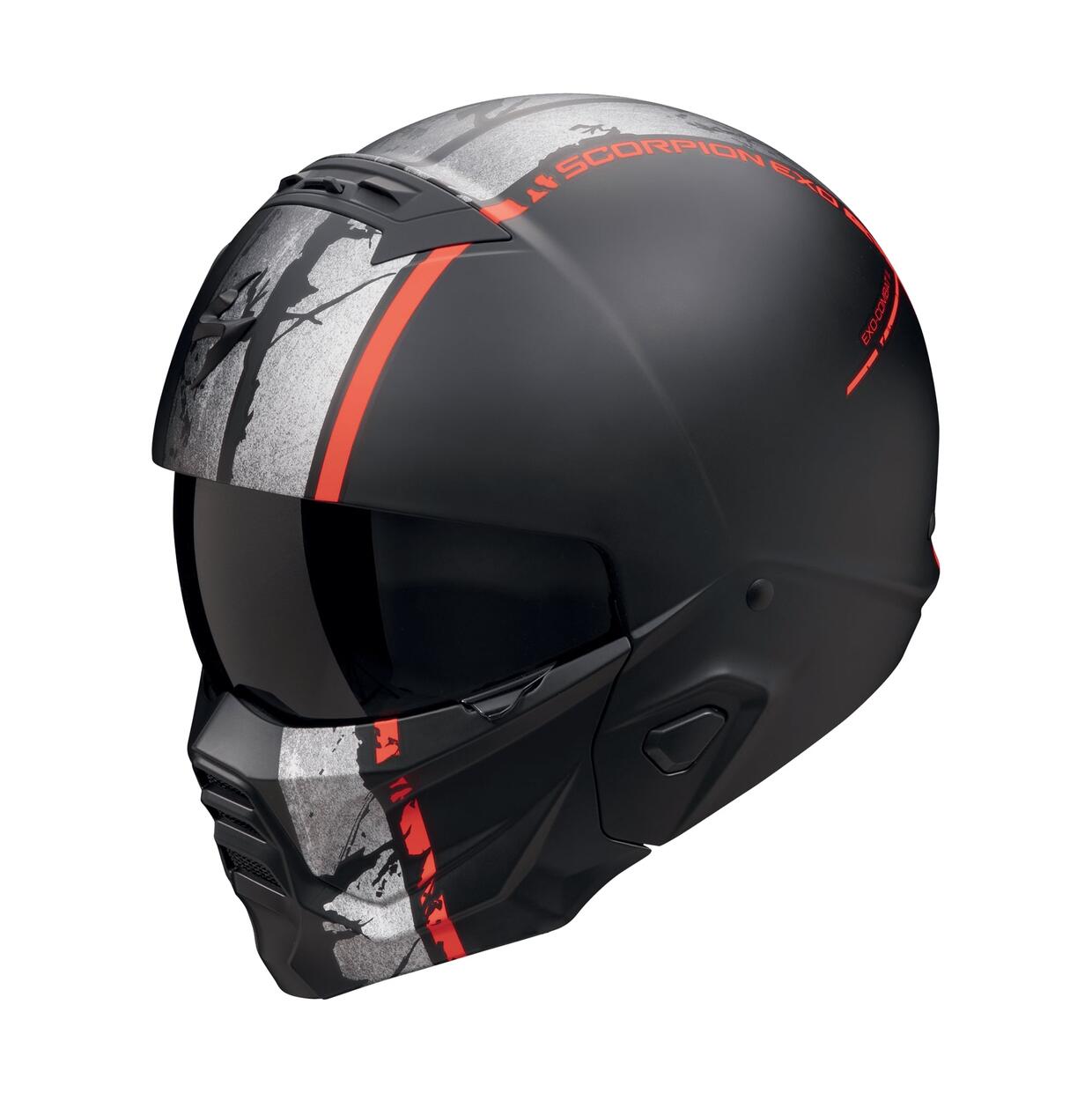 È omologato come casco jet ma è dotato di una robusta mentoniera che contribuisce al suo “radical look” volto a stravolgere le regole del design. Particolare interessante, la visiera dai tratti aggressivi può essere tolta o inserita per mezzo di un semplice attacco magnetico a baionetta. Exo Combat II è pensato soprattutto per l’impiego urbano su moto aggressive come streetfighter e cafè racer, e in questa nuova versione è più silenzioso e dotato di un visierino parasole otticamente avanzato.