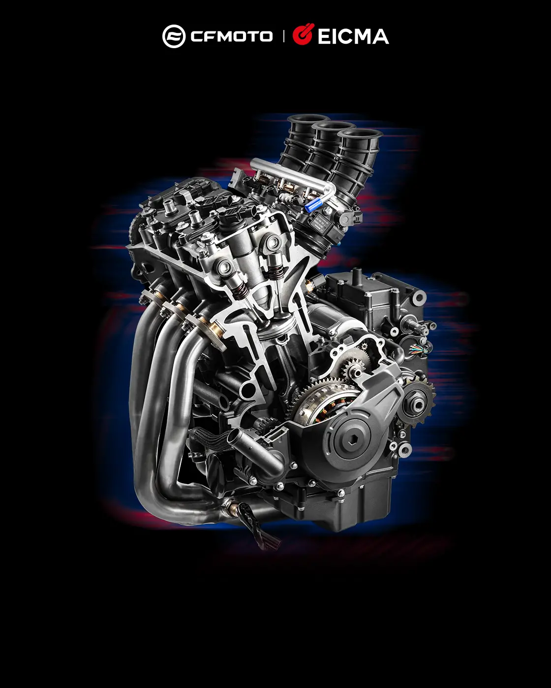 CFMoto ha svelato a Eicma 2023 il motore a tre cilindri che sarà utilizzato sulla sua nuova sportiva 675SR. Il produttore promette prestazioni ragguardevoli: oltre 100 CV e una dotazione raffinata