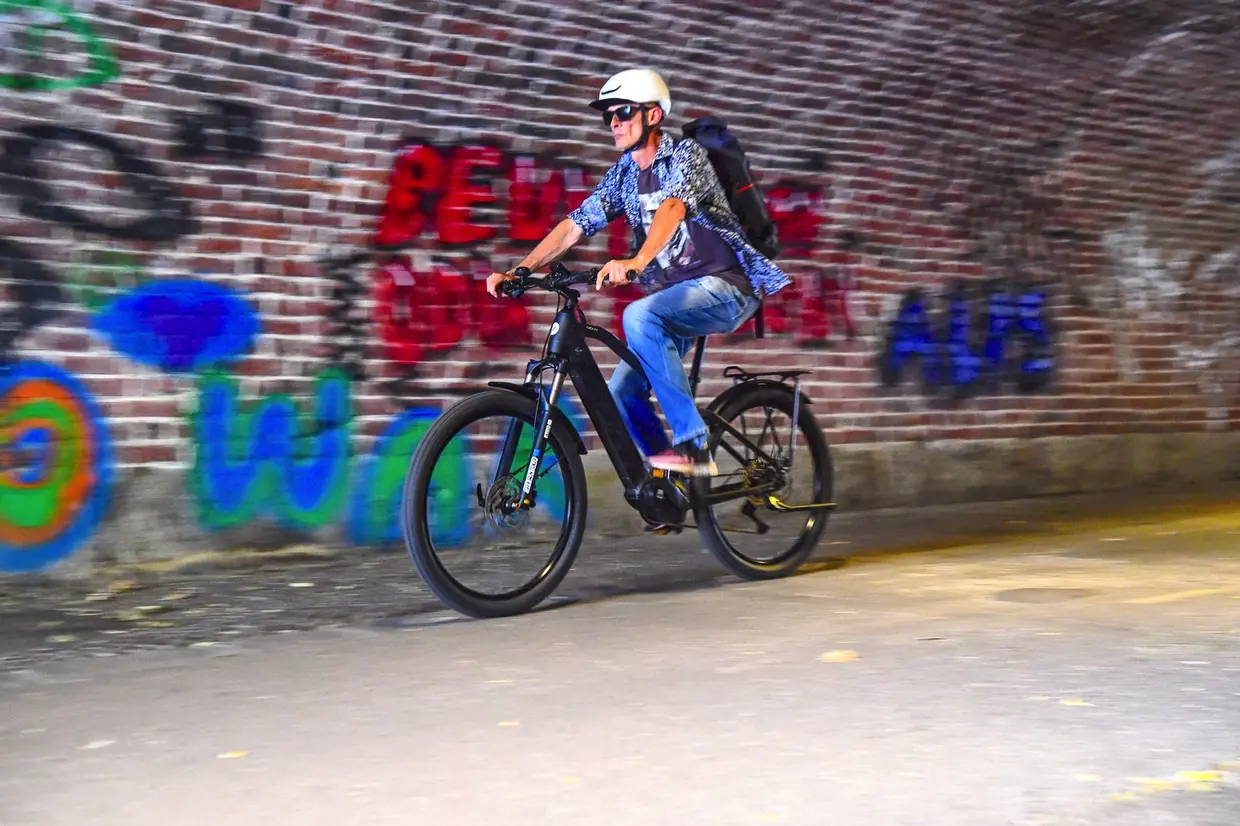 La Kairos Sub è una bici, se vogliamo, dalla doppia personalità: quella "urban" pensata per l’uso di tutti i giorni e quella un po' più “avventurosa”, che emerge nei giretti fuoriporta con bagaglio nei weekend. La forcella da 110 mm è robusta e ben tarata, digerisce bene sia il pavé urbano sia le strade bianche di campagna, ben coadiuvata dai “ruotoni” da 27,5” di diametro e 2,8” di sezione che permettono di affrontare in tutta sicurezza anche i binari del tram. Fluida l’erogazione del motore e buona l’autonomia; un po’ alto invece il movimento centrale, che rende difficoltoso poggiare i piedi a terra se si decide di mettere il sellino alla giusta altezza di pedalata. “Furba” la luce di posizione integrata sotto la sella con due modalità di illuminazione (lampeggio e fissa) che migliora la