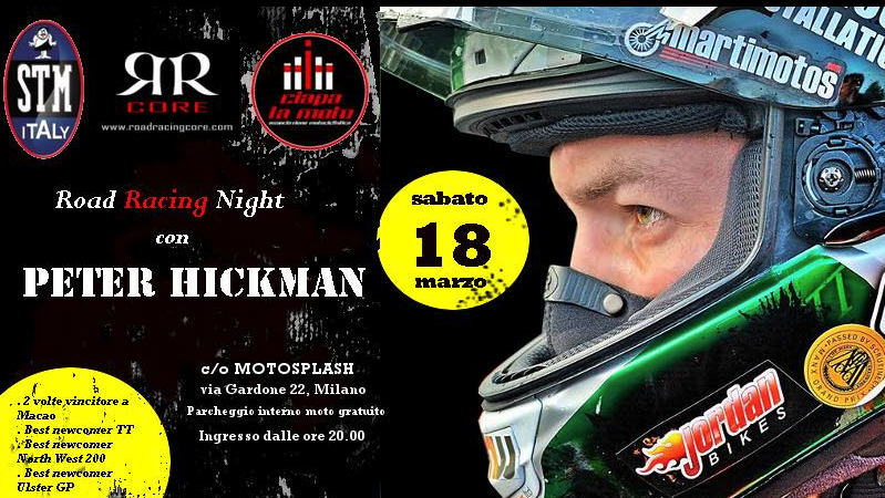 Sabato 18 marzo i ragazzi di Ciapa la Moto ospiteranno uno degli astri nascenti delle road racing, il due volte vincitore a Macau e miglior esordiente al TT, Peter Hickman. Il pilota sarà disponibile anche per rispondere alle domande del pubblico, foto e autografi