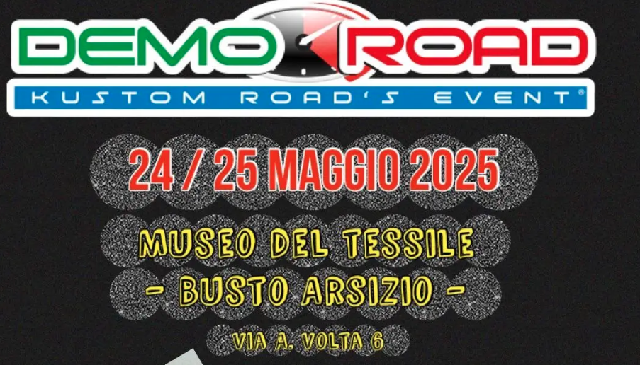 Sabato 24 e domenica 25 maggio, il Museo del Tessile di via A. Volta 6 ospita per la prima volta a Busto Arsizio il Demo Road, evento ormai ben consolidato e organizzato da MotoClub SS33 Sempione in collaborazione con Kustom Road che unisce esposizione di moto, test ride e beneficenza. L’ingresso è gratuito e aperto a tutti. Vediamo il programma della due giorni.