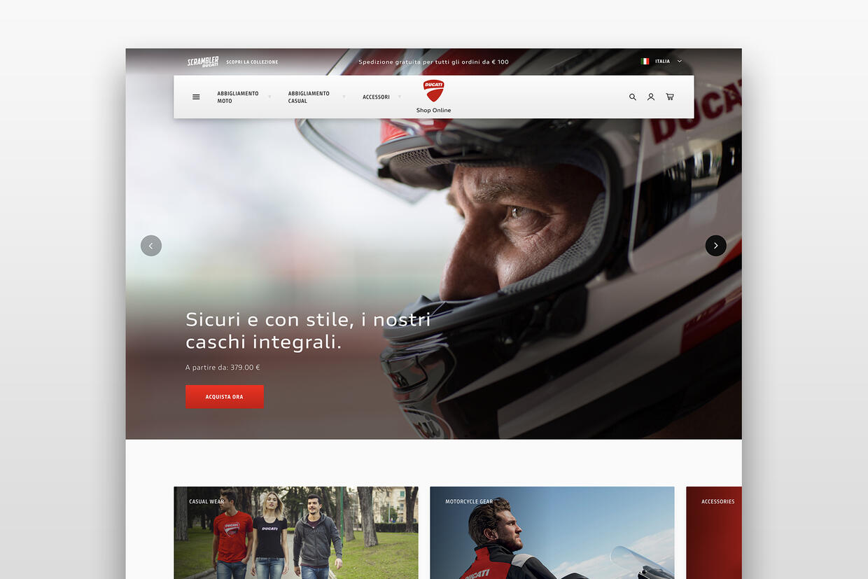 Ducati inaugura la sua nuova piattaforma di Ecommerce: collegandosi al sito internet, sarà possibile sfogliare -e acquistare- l’intero catalogo delle proposte Ducati, dai caschi alle giacche, compresi accessori come portachiavi, orologi e borse
