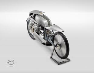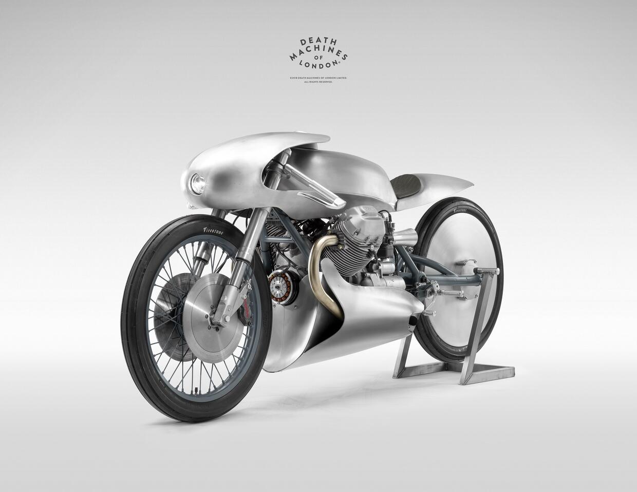 Giovanni Ravelli non vide mai la sua azienda, la Moto Guzzi, creata insieme con Carlo Guzzi (entrambi erano stati piloti dell'Aviazione militare durante la Prima guerra mondiale) e il meccanico Giorgio Parodi: Ravelli morì durante un volo di prova prima che nascesse ufficialmente l'azienda di Mandello del Lario. Ma la sua storia è nel marchio aziendale: è l’Aquila dell’aviatore, inserita proprio in sua memoria. Nel giorno del 130° anniversario della nascita di Ravelli, i preparatori di Death Machines of London hanno presentato la Airforce, special costruita in soli 112 giorni su una Moto Guzzi Le Mans MkII trovata abbandonata in un deposito del Sud d'Italia e realizzata ispirandosi alle forme di uno dei biplani pilotati da Ravelli. Racconta James, co-fondatore di DML: “Una volta trasportata nella nostra officina a Londra, abbiamo proceduto al disassemblaggio. Il motore era ancora in ottime condizioni, senza nessun problema evidente. Abbiamo disassemblato, ispezionato, pulito al vapore e riassemblato il basamento e il cambio, sostituendo cuscinetti, guarnizioni e qualsiasi parte usurata. Abbiamo ricostruito le testate e ottimizzato i flussi. Abbiamo affidato la carburazione a un paio di Dell’Orto da 36 mm con pompa di ripresa, modificati. E il tutto è completato dai nostri cornetti di aspirazione e scarico libero”. I telaio Tonti è stato modificato a fondo: rimossa ogni parte non necessaria, è aumentato l’angolo di sterzo di 3 gradi, sostituito il forcellone originale con uno di derivazione California con capriata di rinforzo e monoammortizzatore. Per il colore del telaio e della ruota anteriore i preparatori inglesi hanno creato ad hoc l’“Airforce Grey”. Le ruote sono composte da mozzi di derivazione California - modificati, con cerchioni in alluminio da 21x3.00; a quella posteriore è stata aggiunta una copertura in alluminio, realizzata artigianalmente. Il tutto è completato da gomme Firestone. Le piastre di sterzo sono di derivazione Cagiva, mentre la forcella arriva da un’Aprilia RS250 con molle e steli modificati. Lo scarico d’ispirazione aeronautica invece è stato specificatamente realizzato da Hagon per DMOL. L’impianto frenante vede all’anteriore due pinze Brembo a quattro pistoncini lavorati dal pieno, con una pompa Brembo RCS; i dischi in acciaio da 300 mm, invece, sono stati progettati e fabbricati da DMOL, così come i tubi dei semimanubri e le manopole. Le leve sono le prime create interamente da DMOL (le Lever Type IN0): lavorate al CNC in alluminio aeronautico, saranno a breve disponibile come aftermarket. L'Airforce ha proiettore allo Xenon, fanalino posteriore a led inserito in un supporto in alluminio, strumentazione ridisegnata con illuminazione regolabile e carrozzeria battuta a mano in alluminio, costruita con la tradizionale tecnica che utilizza uno scheletro in legno poi ricoperto con pannelli lavorati su ruota inglese. Tocco fuori dagli schemi per la chiave di avviamento: è un jack per chitarra elettrica, questa Guzzi deve suonare proprio bene...