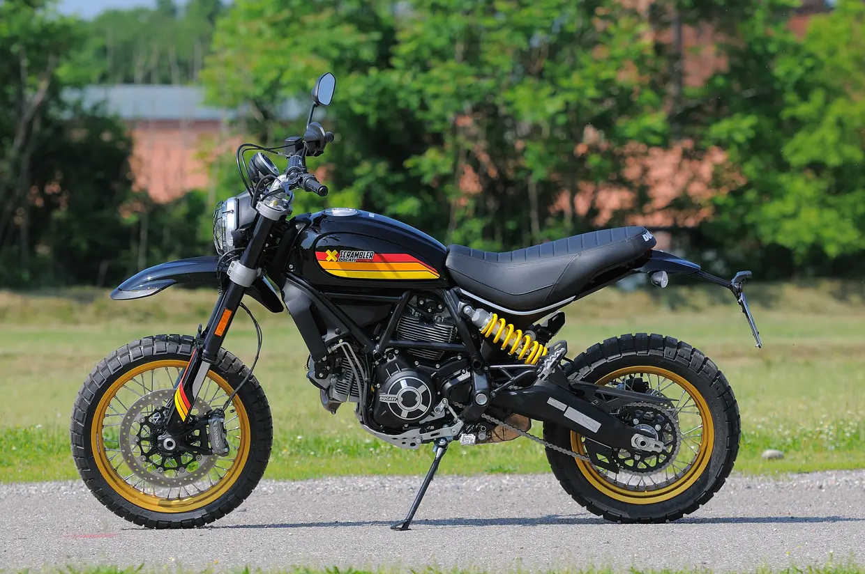 La Desert Sled è la versione “avventurosa” delle Scrambler Ducati. Monta il classico, vigoroso bicilindrico Desmodue da 803 cm3 raffreddato ad aria, telaio e forcellone rinforzati, sospensioni Kayaba regolabili a lunga escursione (200 mm la forcella), cerchio anteriore da 19” e manubrio con traversino. Costa 11.190 euro.