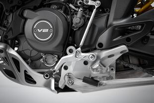 Cuore della nuova DesertX, come dicevamo, è il motore V2 di 890 cm³, con distribuzione bialbero, quattro valvole per cilindro e dotato del sistema di fasatura variabile IVT sulle valvole di aspirazione. La potenza dichiarata in questa configurazione è di 110 CV, con un picco di coppia 92 Nm raggiunto al regime di 7.000 giri/min. Ducati dichiara inoltre che il 70% della coppia è disponibile già a 3.000 giri/min mentre gli intervalli di manutenzione prevedono il controllo del gioco valvole ogni 45.000 km e il cambio olio ogni 15.000 km o due anni. Valori superiori rispetto al passato.