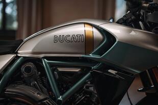Cinquant'anni dopo, nell'anno del centenario, Ducati tira fuori dagli archivi quella storia e la reinterpreta in chiave contemporanea con la Formula 73. La livrea argento e verde acqua — colori della 750 originale — è il risultato di una ricerca meticolosa nei materiali storici dell'azienda. La striscia verticale dorata sul serbatoio cita il segno non verniciato sulla 750 Imola, usato dai meccanici per controllare il livello del carburante senza aggiungere strumenti che avrebbero appesantito la moto. Il manubrio a clip-on con specchietti alle estremità, la carena corta e il codino confermano l'anima café racer senza bisogno di dichiararlo.