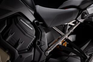 Giunge alla seconda generazione la Multistrada V4 RS, che come la Diavel “switcha” il V4 Granturismo in favore del Desmosedici stradale di 1.103 cm³ e 180 CV con frizione a secco. Per il model year 2026 il progetto non è stato stravolto, ma arrivano migliorie in tema di elettronica e sovrastrutture, con un look aggiornato ed un inedito telaietto posteriore in titanio più leggero di 2,5 km rispetto a quello della Multi V4 “standard”. Lato elettronica viene ereditato il ricchissimo pacchetto della Multistrada V4 S, compreso il sofisticato Ducati Vehicle Observer (DVO), capace di simulare l’input di 70 sensori per affinare ABS Cornering e Wheelie Control. Le sospensioni elettroniche hanno una gestione indipendente dai Riding Mode e debuttano nuove strategie frenanti Front-to-rear.