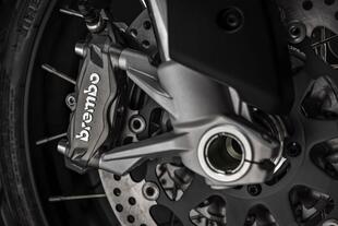 Modificata anche la posizione di guida: il manubrio è stato abbassato di 30 mm (sono state riviste, di conseguenza, le forme della cover del serbatoio) e la sella di 10 mm, mentre il parabrezza è regolabile.