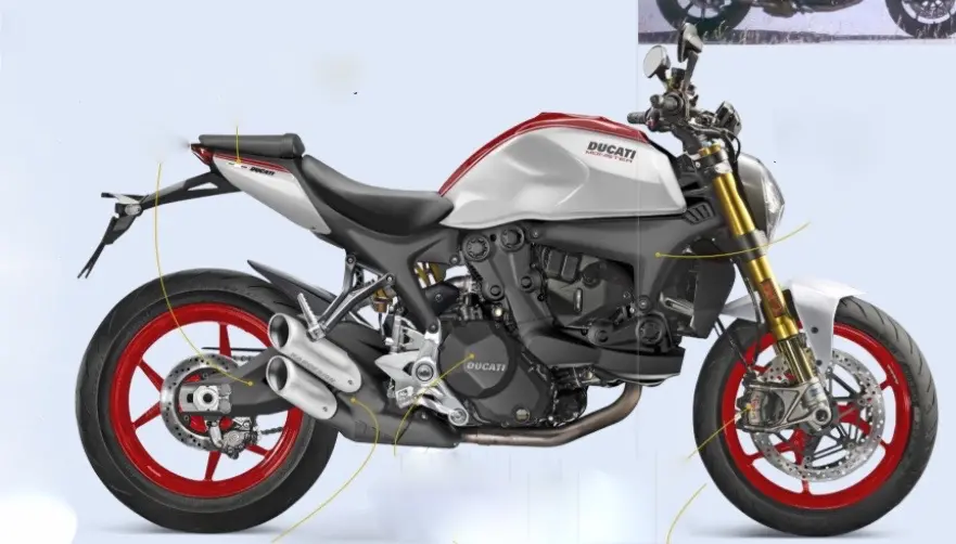 Per quanto riguarda l'estetica (qui sotto un disegno di come potrebbe essere), invece, non dovrebbero esserci stravolgimenti, ci sarà un ritocco alle linee, con un serbatoio più scolpito e, soprattutto, un codino sempre più "mini" e simile a quello di una supersportiva, a sottolineare una volta di più il carattere sportivo della nuova Monster.