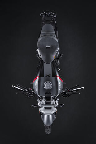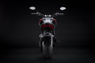 La Black Star infatti è dotata di una livrea inedita che ne fa risaltare le forme grazie a una bella combinazione di gradazioni di grigio. Cambiano anche i cerchi che per la Black Star (qui sopra) sono forgiati e lavorati in nero lucido. All’anteriore, il cerchio ruota è da 3,5” x 17’’, mentre al posteriore è previsto un cerchio da 8” x 17’’. Sul cerchio anteriore è montato uno pneumatico da 120/70 ZR17 con battistrada ridisegnato per massimizzare le prestazioni sul bagnato, mentre lo pneumatico posteriore è da 240/45 ZR17. Le coperture sono le nuove Pirelli Diablo Rosso III. Debutta anche una nuova colorazione per la versione Dark, denominata Dark Stealth con telaio Carbon Black e ruote nero opaco.